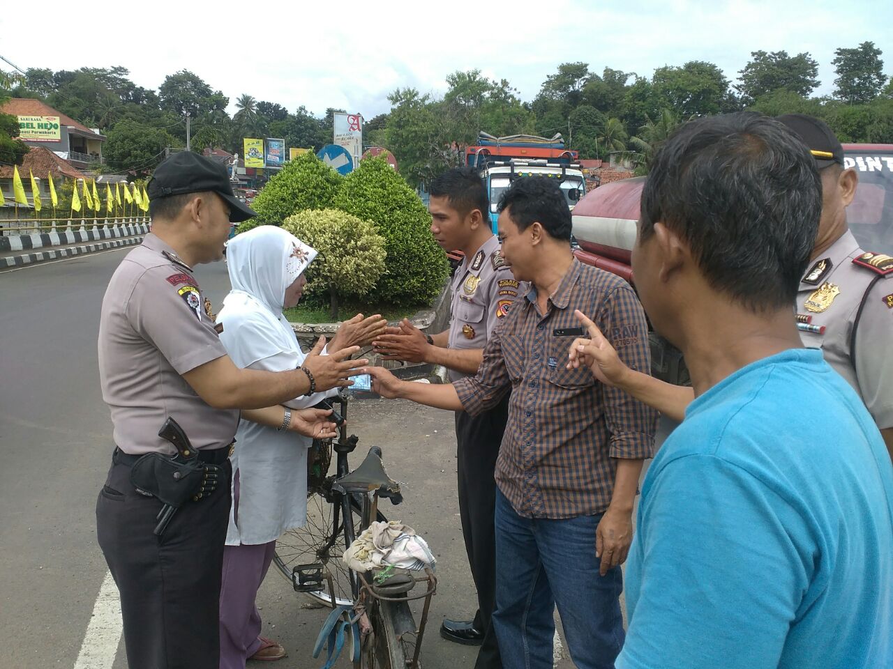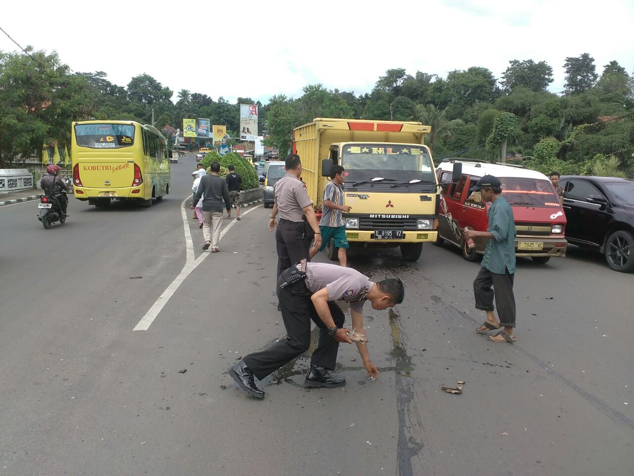 Kebetulan saat peristiwa itu terjadi Kasat Binmas AKP Sulaeman Permana, S.H. MH, beserta tiga anggotanya sedang melintas, melihat kejadian kecelakaan tersebut Pak Kasat bersama ketiga anggotanya kontan langsung menghentikan kendaraan mereka dan kemudian berlari mendekati korban untuk melakukan pertolongan.