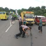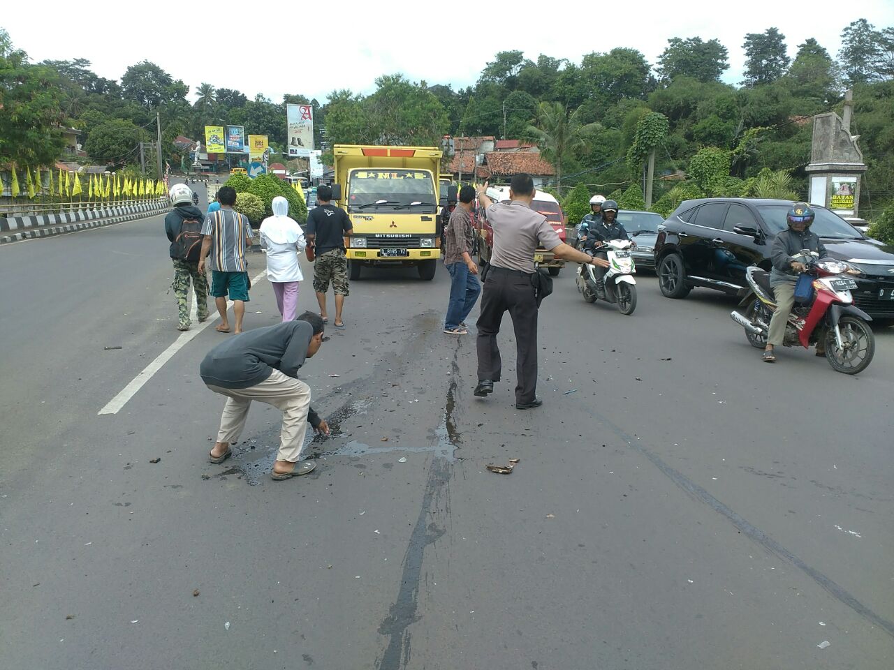 Pada saat itu terlihat beberapa botol dari sepeda milik ibu pedagang jamu itu terjatuh dan pecah, Alhamdulillah tidak ada korban jiwa dalam kejadian tersebut, pak Kasat beserta anggotanya langsung menenangkan ibu pedagang jamu tersebut dan mengatur lalu lintas agar situasi lalu lintas tidak terganggu akibat dari kejadian kecelakaan ini.