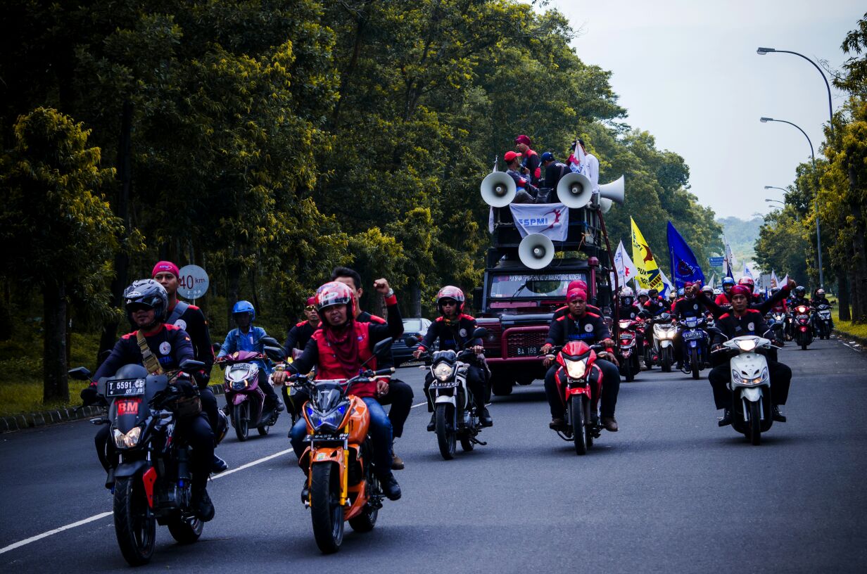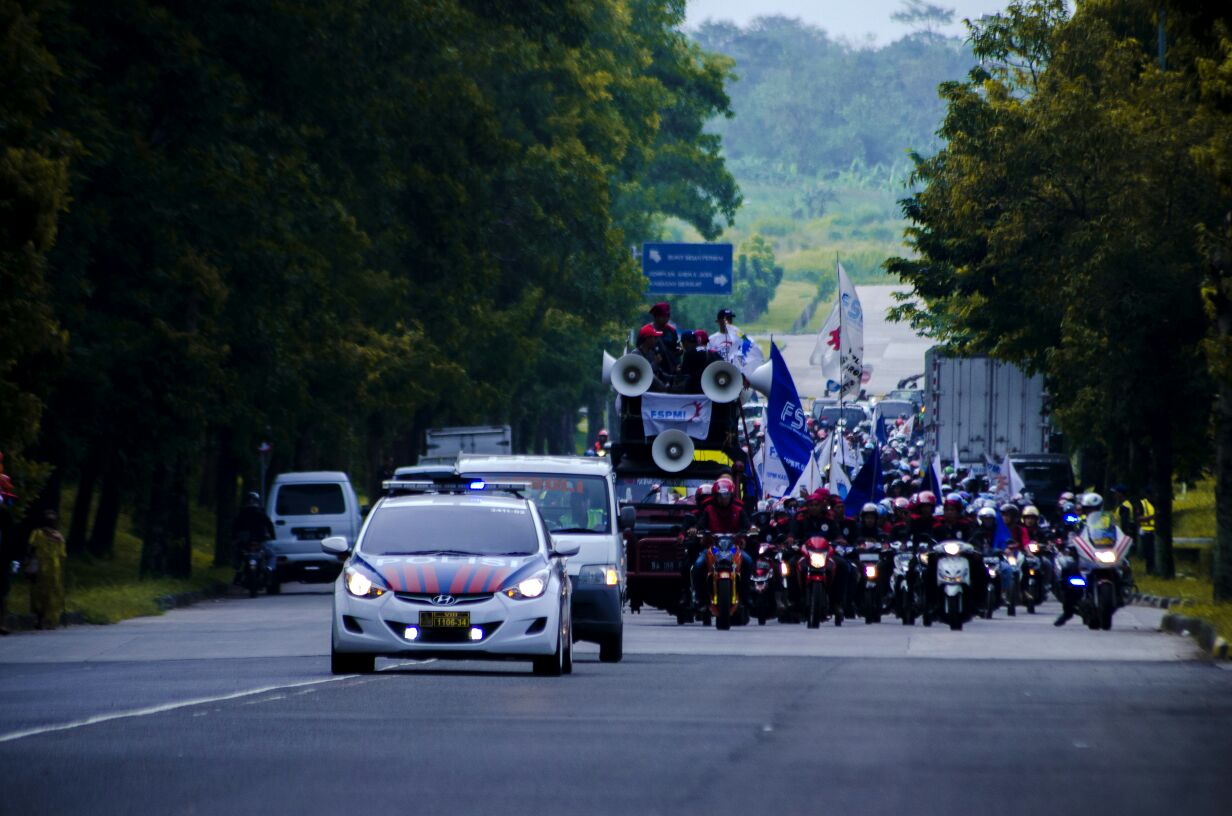 Dengan pengamanan serta pengawalan ketat Kepolisian Resor Purwakarta dan Kepolisian Sektor Bungursari massa Serikat buruh FSPMI dan Serikat buruh SPSI yang bergerak dari masing-masing titik kumpul pemberangkatan Serikat Buruh menuju Kantor Disnakersostrans, Pemda dan DPRD Purwakarta berlangsung dalam keadaan aman, tertib dan lancar.