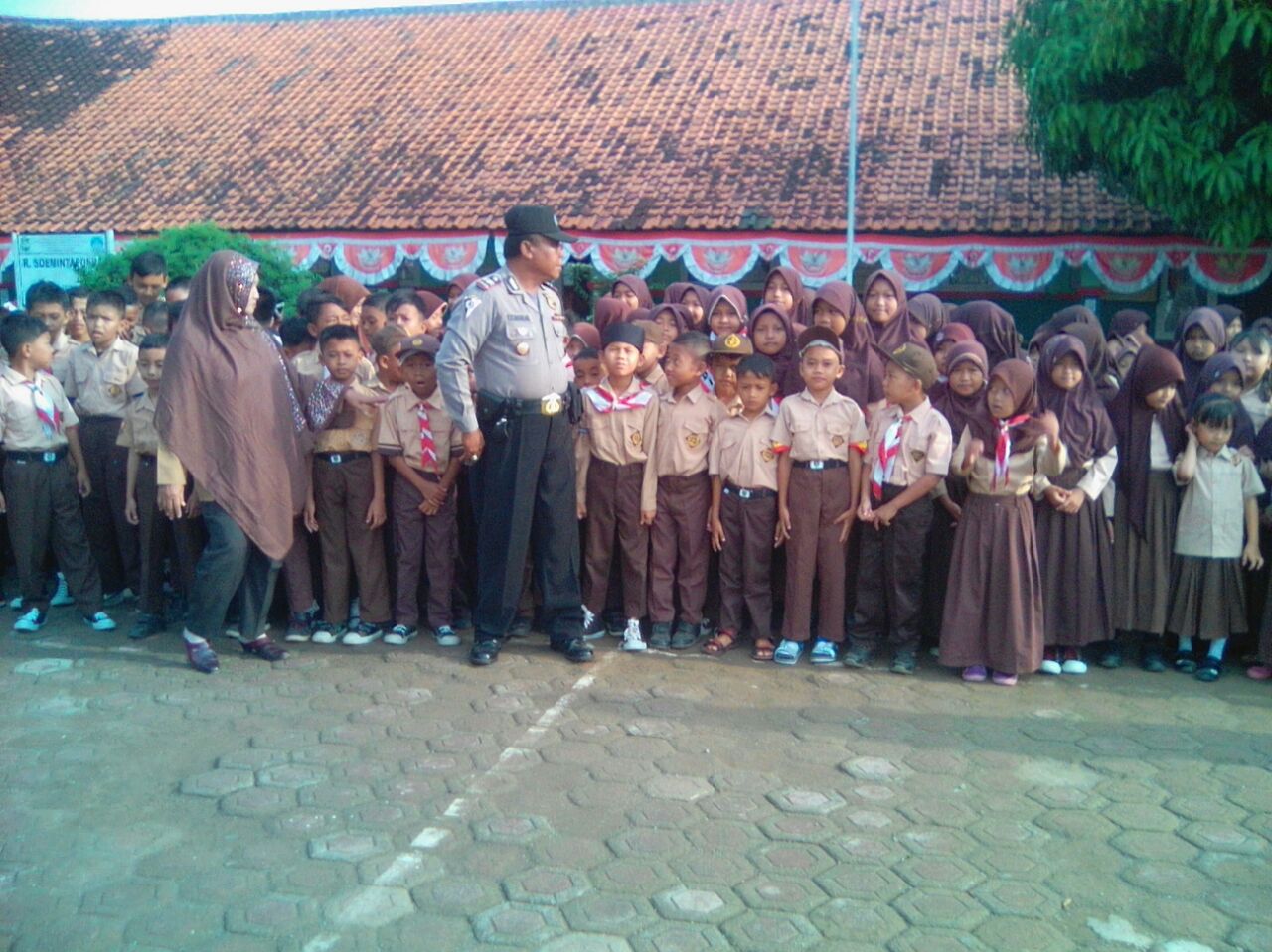 Materi yang dibawakan oleh pak kanit kepada para siswa adalah tentang keselamatan berlalu lintas, salah satu contoh yang dipaparkan oleh pak kanit kepada mereka adalah tata cara menyebrang jalan, cara aman jika menjadi penumpang motor, dan tata cara memakai helm yang benar.