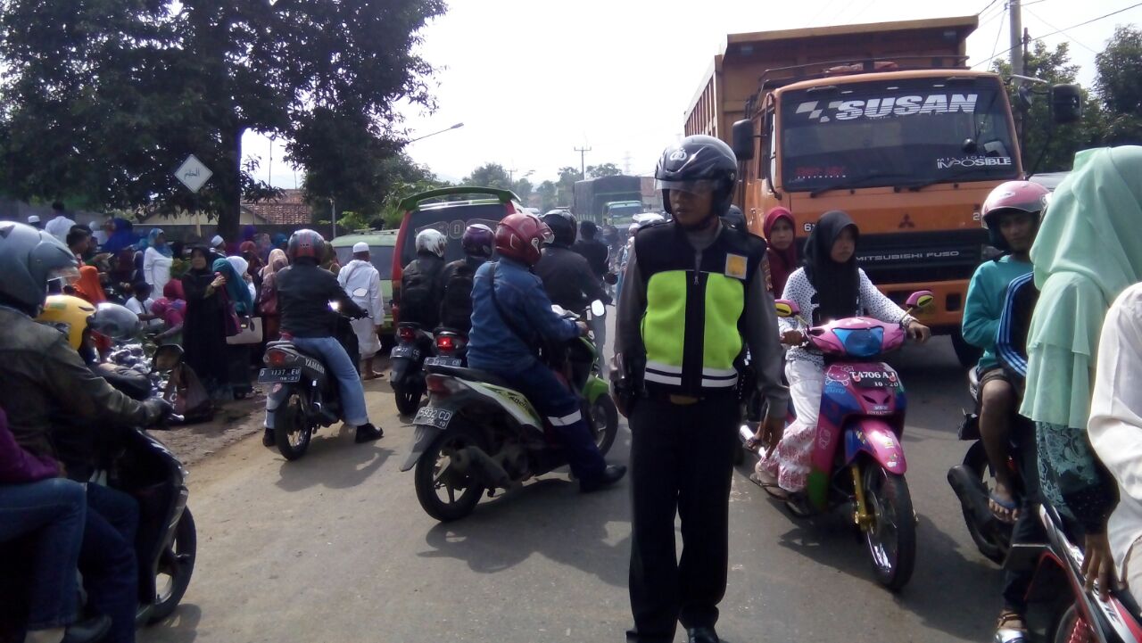 Dengan banyaknya jemaah yang datang dari berbagai kota, Bhabinkamtibmas selalu hadir untuk mengantisipasi kemacetan pada saat kepulangan para jemaah.