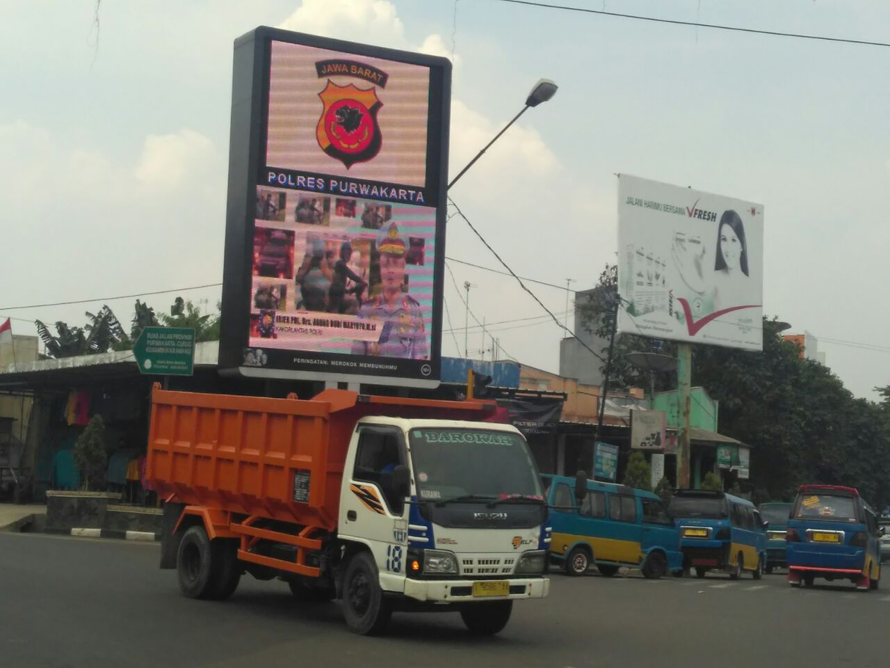 Untuk lebih meningkatkan pelayanan kepada masyarakat dan menurunkan angka kecelakaan lalu lintas khususnya yang melibatkan angkutan barang yang mengangkut penumpang dan anak sekolah yang melakukan BM/papalidan (naek / numpang truck truck), Sat Lantas Polres menayangkan tayangan himbauan himbauan keselamatan berlalu lintas dan peningkatan pelayanan publik bebas calo melalui tayangan di videotron yang berada di persimpangan Haji Iming Purwakarta.