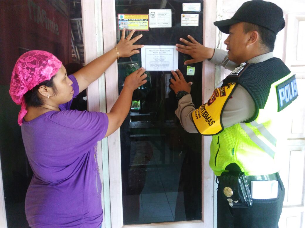 Bhabinkamtibmas Polsek Cibatu Polres Purwakarta Sosialisasi Dan Tempel Stiker Nomor Pengaduan Polsek