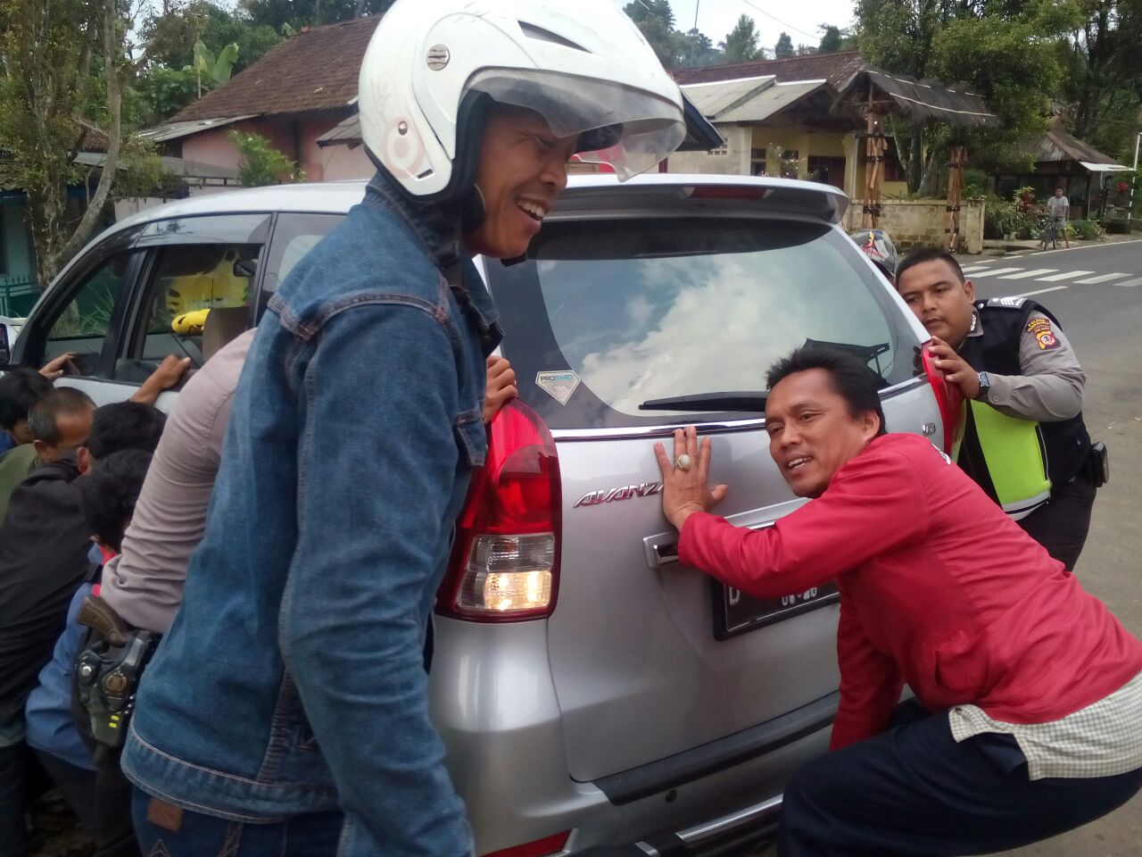 Bripka Erik anggota Patroli Polsek Kiarapedes dengan menggunakan sepedamotor Patroli yang melaksanakan patroli ke Desa Pusakamulya dan perjalanan menemukan kendaraan R.4 terperosok dan dengan sigap Bripka Erik dengan meminta bantuan warga yg ada membantu mengangkat mobil tersebut sehingga bisa berjalan sebagaimana mestinya.