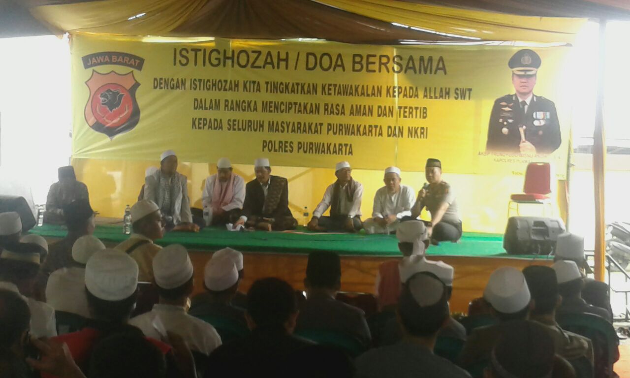 Kemarin (30/11) Polres purwakarta menggelar do’a bersama yang berlokasi di Halaman masjid Baiturrohman Polsek Kota Purwakarta, kegiatan tersebut dihadiri oleh banyak tokoh agama, diantaranya hadir Ketua MUI Kabupaten Purwakarta KH. drs Abun Bunyamin, KH Adang badrudin Pimpinan Pondok Pesantren Al Hikamussalafiyah Cipulus, KH Syah Alam Ridwan, Piminan Pondok pesantren Al Islam, KH Dadang Mustofa Kamil ketua FKUIP, serta para tokoh agama lainnya dan juga dihadiri beberapa oleh ketua ormas