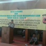 Acara peringatan Maulid Nabi tersebut mengambil tema “Dengan Meneladani Akhlak dan Kepemimpinan Nabi Besar Muhammad SAW Kita Wujudkan POLRI Yang Profesional Modern dan Terpercaya”.