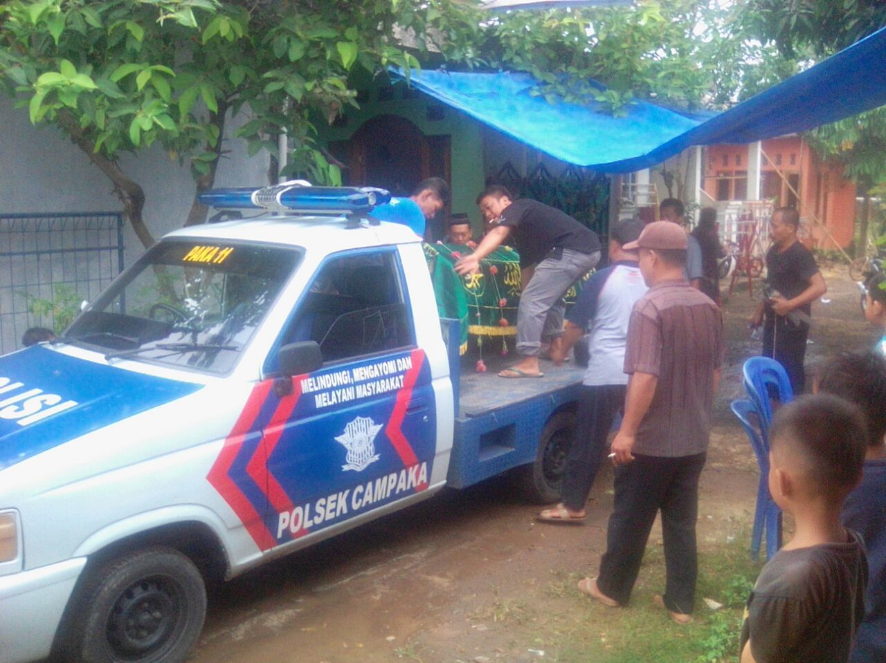 Meskipun dalam keadaan sedang menjalani piket, Aiptu Bambang Karyono Anggota Polsek Campaka Yang bertugas sebagai Bhabinkamtibmas desa Campaka, tetap beranjak dari Kantornya setelah mendengar bahwa salah satu warga di desa binaannya ada yang meninggal dunia.
