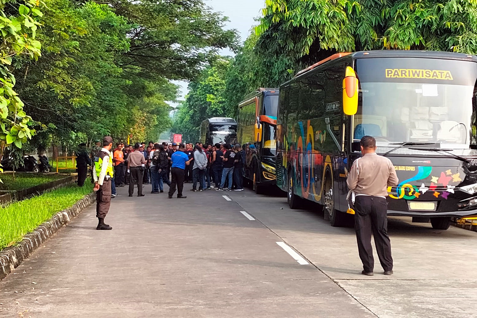 Ratusan buruh yang tergabung dalam berbagai serikat itu berangkat ke Ibu Kota untuk memperingati Hari Buruh Internasional atau May Day 2024.