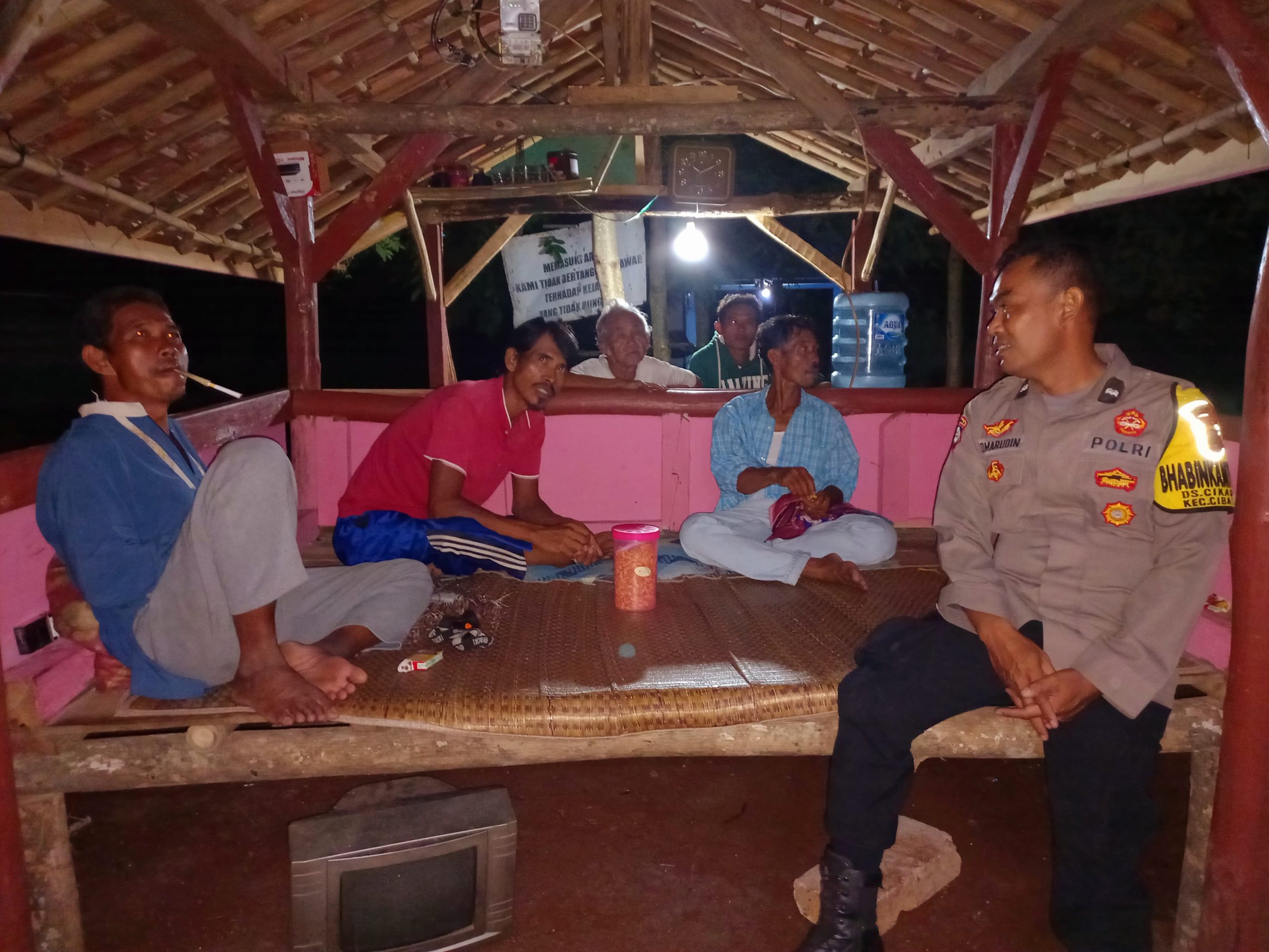 PURWAKARTA – Bhabinkamtibmas Polsek Cibatu rutin menyambangi pos kamling di desa binaannya. Kegiatan ini merupakan bentuk dukungan Polri terhadap peran serta masyarakat dalam menjaga keamanan lingkungan.
