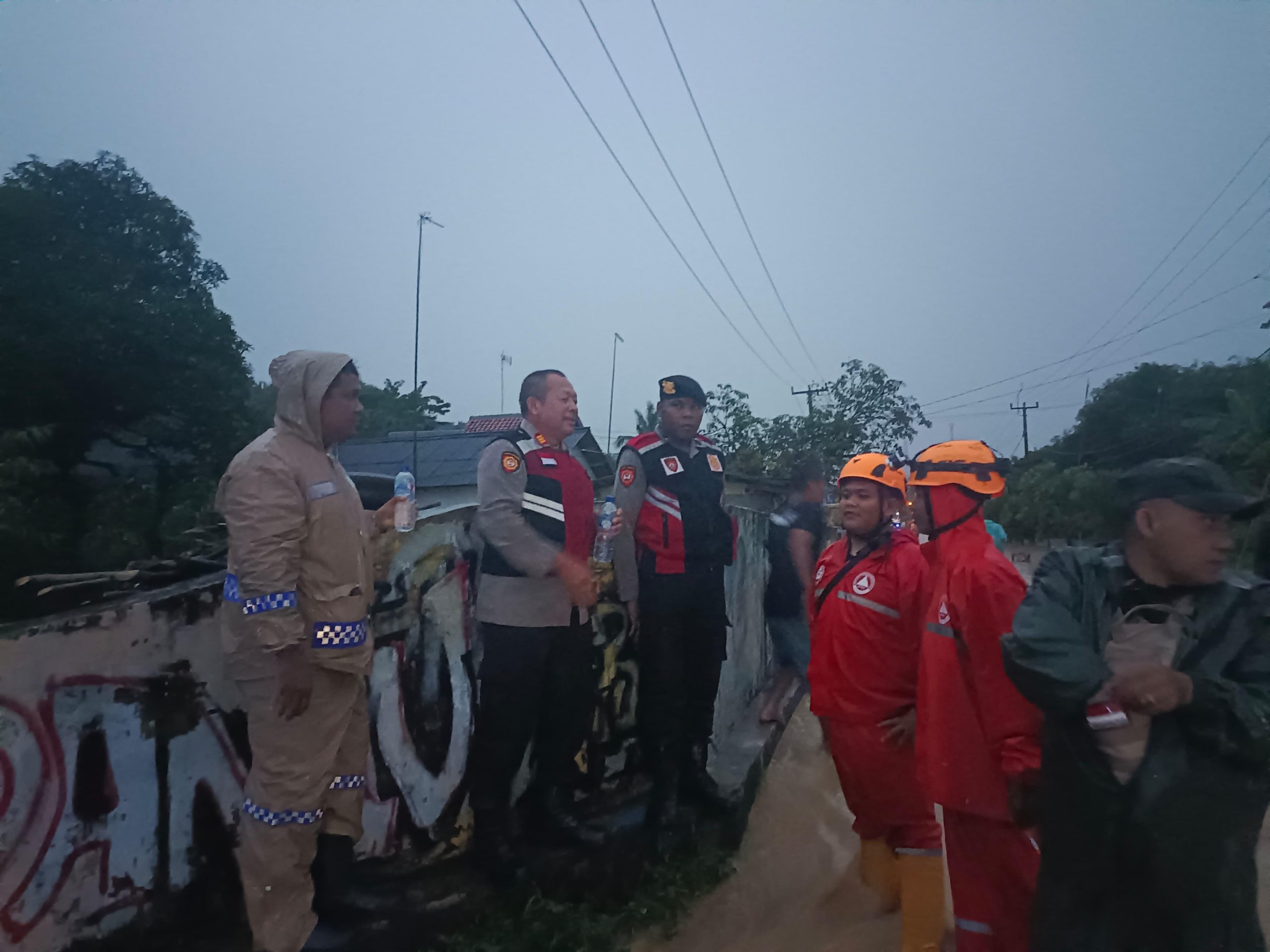 Dalam kegiatan tersebut, petugas melakukan pemantauan situasi dan memberikan pengamanan di lokasi yang terdampak banjir.