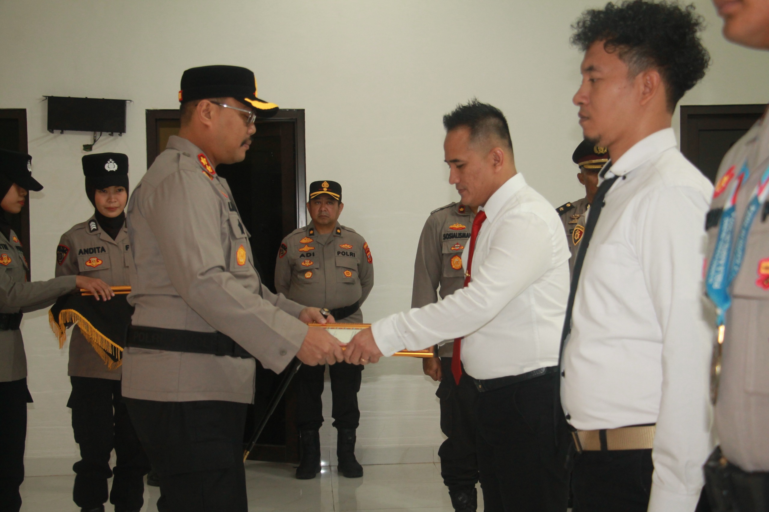 Penyerahan penghargaan sebagai bentuk apresiasi dari orang nomor satu di jajaran Polres Purwakarta, tehadap kinerja Unit Jatanras Satreskrim di bawah pimpinan kanit, IPDA Omad Abdullah, S.H., M.H.,CPHR.