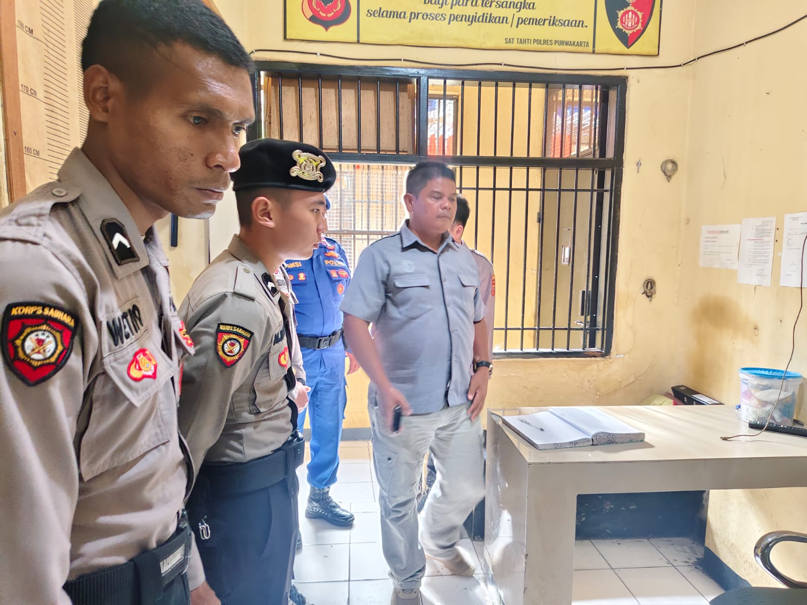 “Setelah kita cek tadi, jeruji besi dan juga ventilasi ruang tahanan dalam kondisi bagus, sehingga tidak perlu perbaikan. Tapi pengecekan mendadak akan terus dilakukan. Selain itu tidak ditemukan alat komunikasi tahanan dan benda berbahaya lainnya dan ruang tahanan dalam kondisi baik,” ungkap Enjang