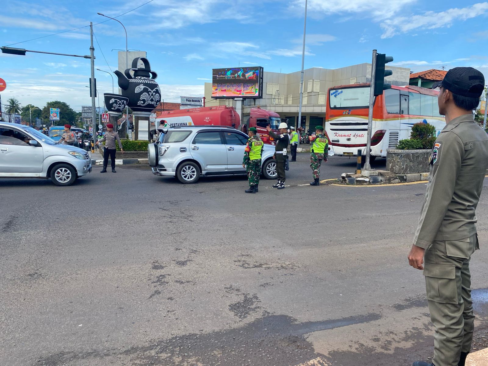 Di Purwakarta, Polres Purwakarta bersama unsur TNI melakukan penyekatan berupa rekayasa lalu lintas berupa pengalihan arus dan pembatasan operasional angkutan barang kendaraan sumbu 3 yang akan memasuki gerbang tol, Pada Jumat, 28 Maret 2025.