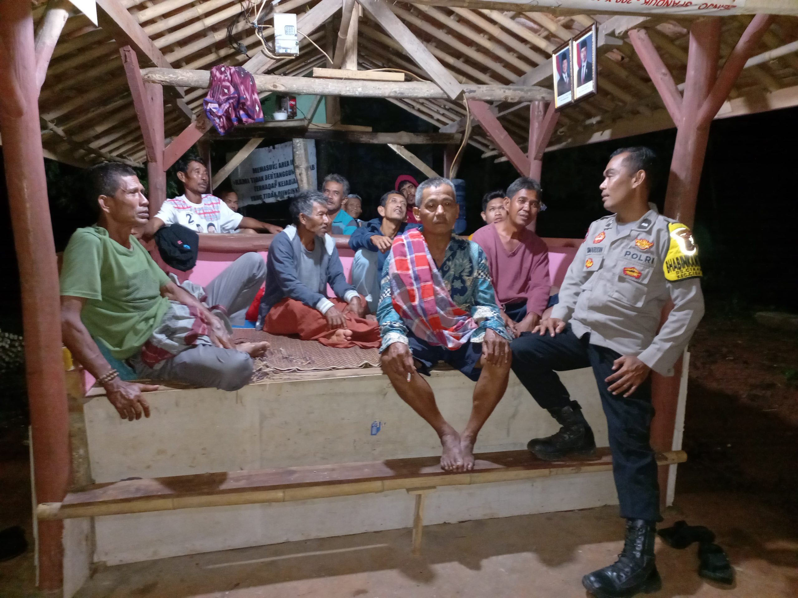 Kunjungan tersebut dilakukan sebagai bentuk kepedulian dan dukungan terhadap kegiatan ronda malam yang dilaksanakan warga setempat. Dalam kesempatan itu, Bhabinkamtibmas menyampaikan pesan-pesan kamtibmas sekaligus mengajak masyarakat untuk tetap semangat dan kompak dalam menjaga keamanan lingkungan.