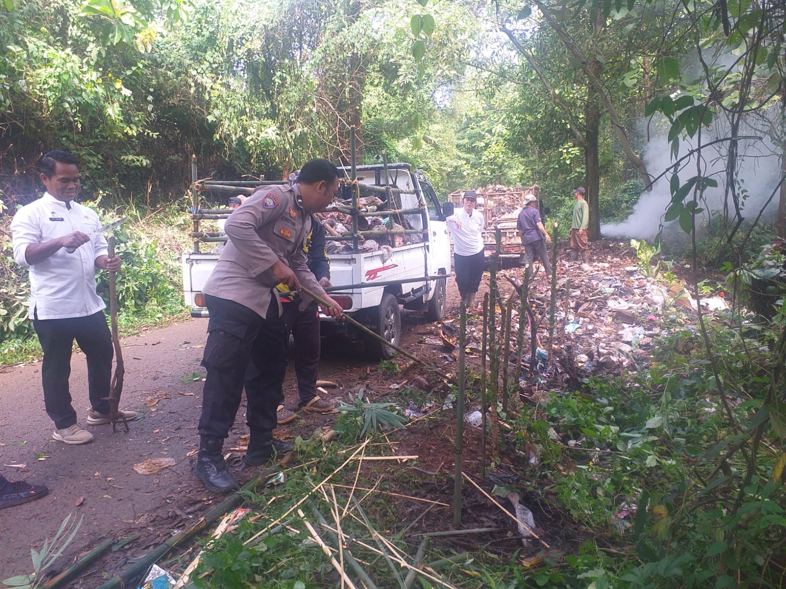 Kegiatan tersebut difokuskan pada pembersihan parit dan selokan di sepanjang bahu jalan desa, yang selama ini menjadi jalur penting bagi warga dan rawan tersumbat oleh sampah maupun lumpur. Kegiatan gotong royong ini melibatkan unsur perangkat desa, staf kecamatan, serta warga masyarakat setempat.