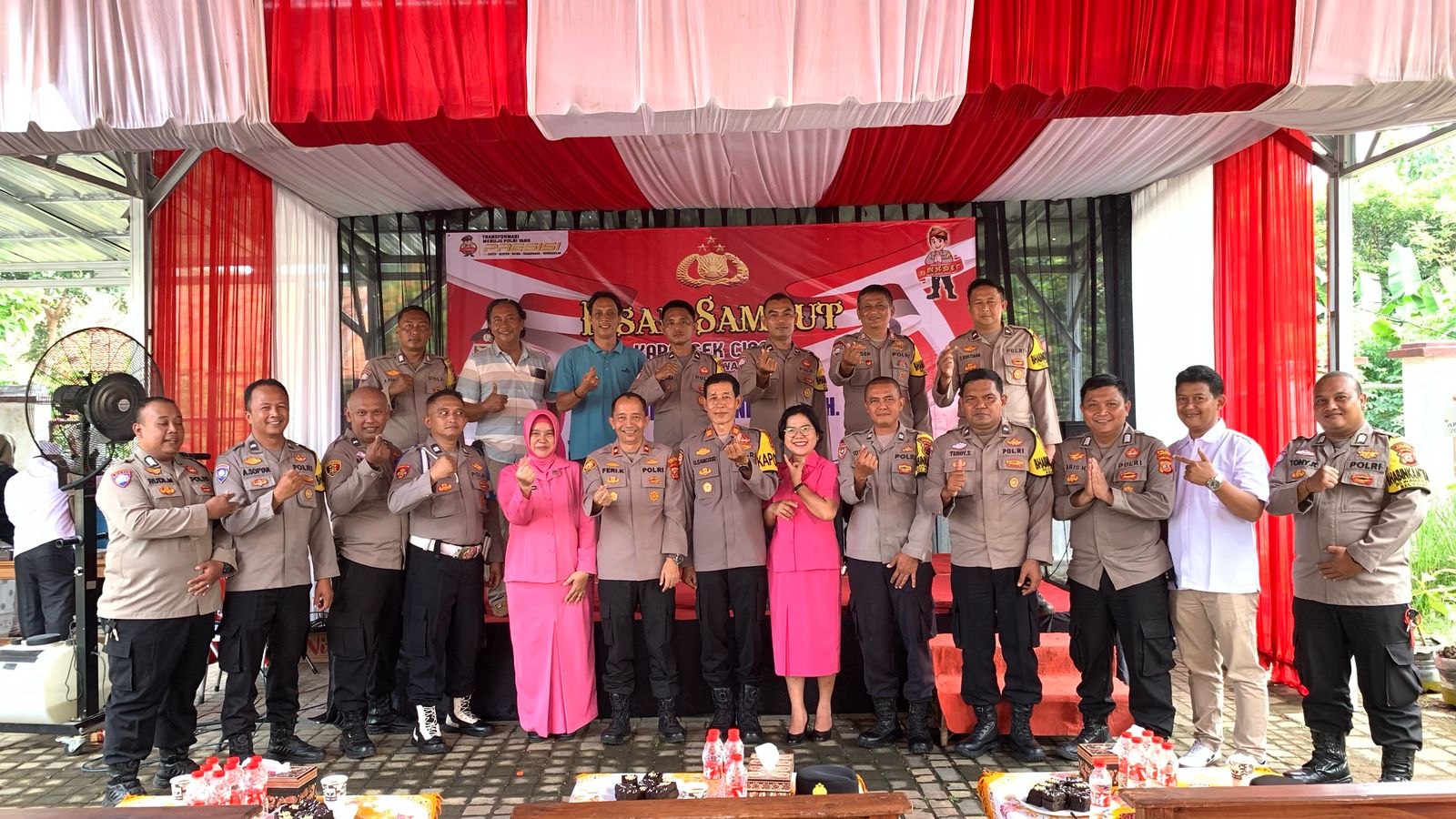 Acara pisah sambut di halaman Mapolsek ini berlangsung sederhana namun penuh makna. Kegiatan ditutup dengan pemberian cendera mata, sesi foto bersama, serta ramah tamah antara anggota Polsek Cibatu, Bhayangkari Ranting Cibatu dan tamu undangan.
