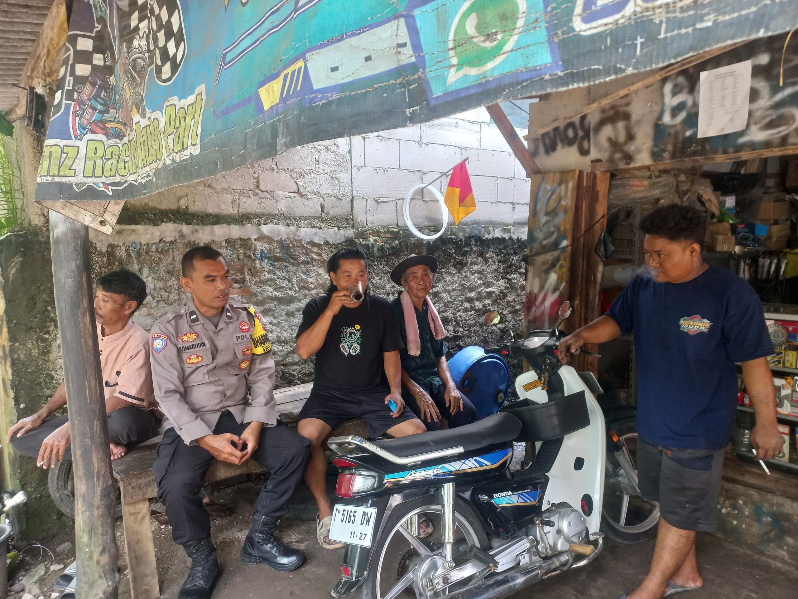 Dengan santai dan penuh keakraban, Aipda Komarudin berbincang bersama warga yang tengah beraktivitas di depan rumah. Selain ngobrol ringan, ia juga mengingatkan pentingnya menjaga keamanan lingkungan serta tetap waspada terhadap potensi gangguan kamtibmas.