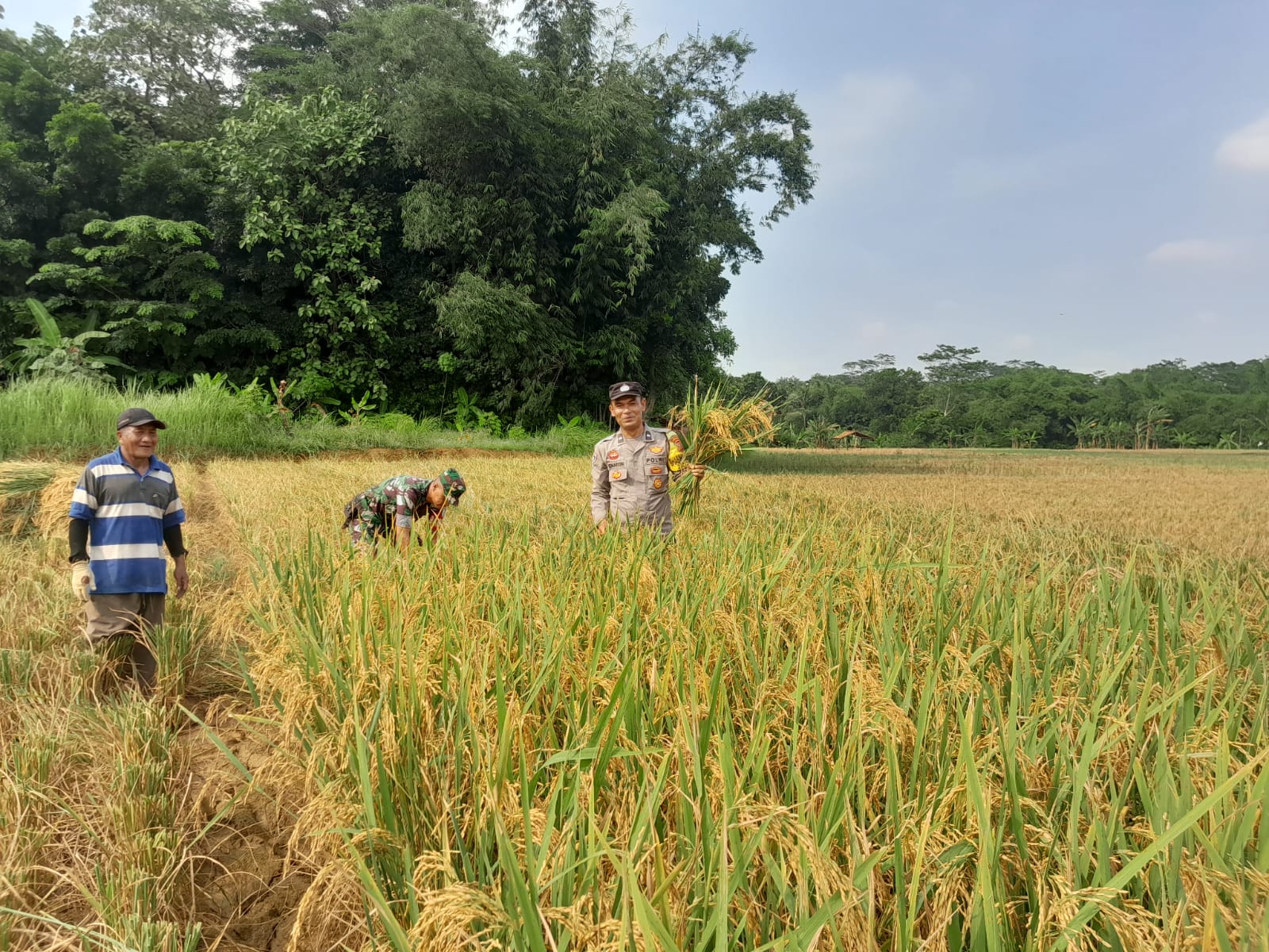 Guyub dan Kompak, Bhabinkamtibmas dan Babinsa Bantu Warga Panen Padi