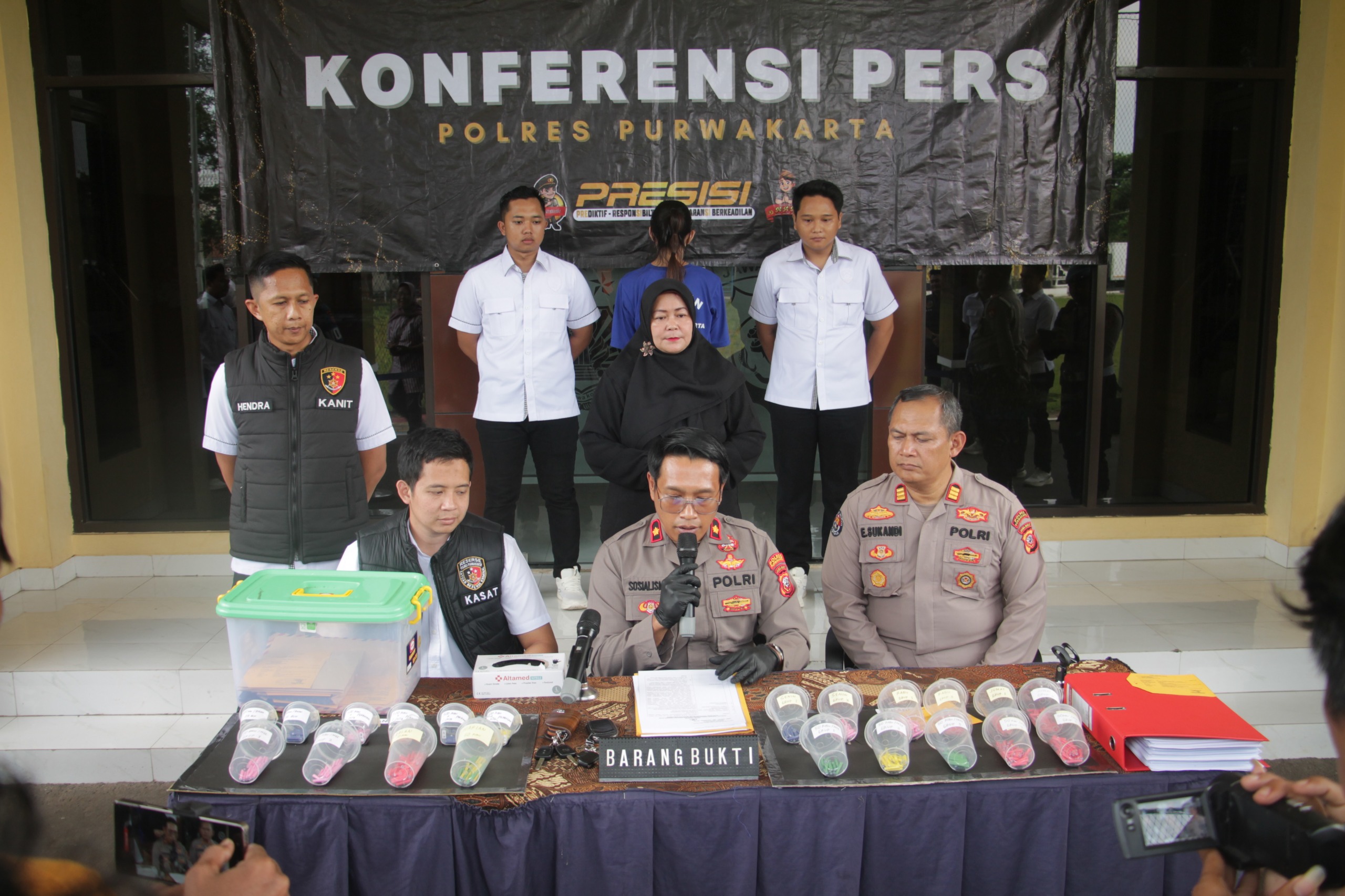 Kapolres Purwakarta, AKBP Lilik Ardhiansyah melalui Wakapolres, Kompol Sosialisman Muhammad Natsir, pelaku yang berprofesi ibu rumah tangga ini dilaporkan telah melakukan aksi penipuan dan atau penggelapan dengan total kerugian lebih dari Rp 1 Milyar.