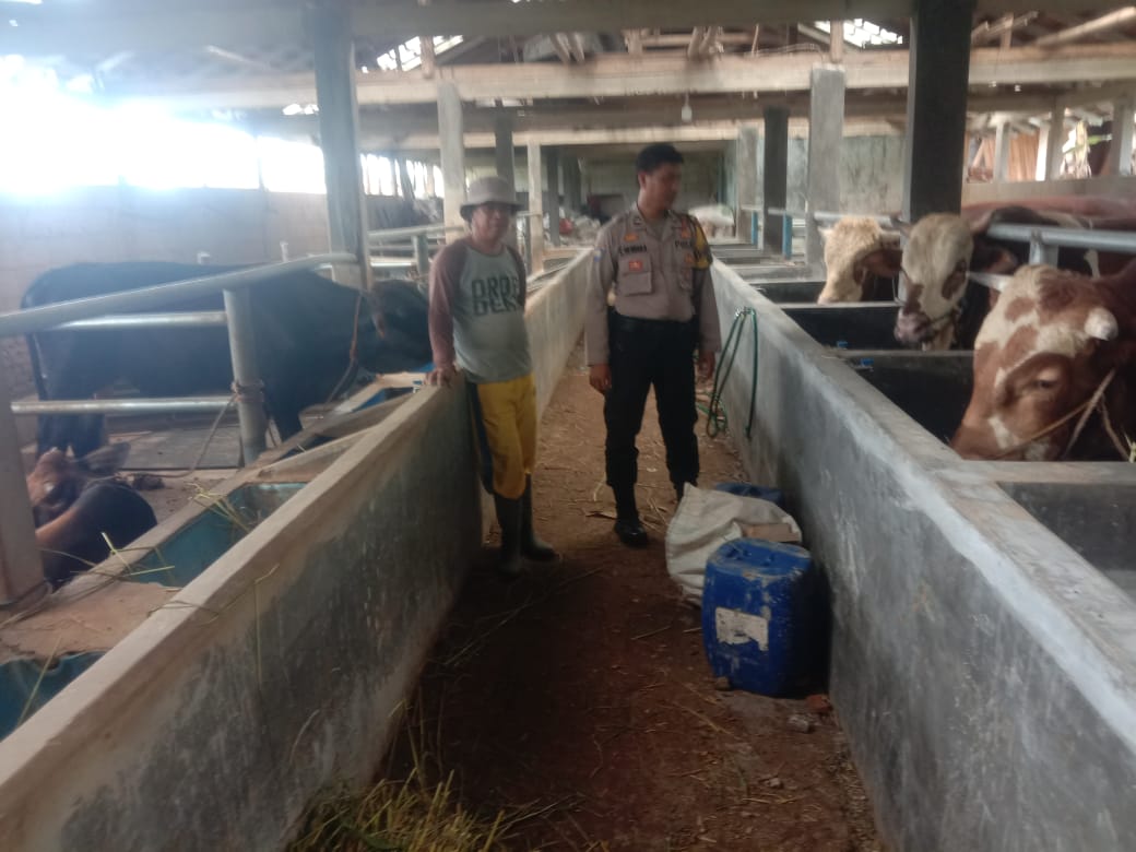 PURWAKARTA – Bhabinkamtibmas Polsek Plered, Polres Purwakarta melakukan pengecekan di peternakan sapi milik warga di Kecamatan Plered, Kabupaten Purwakarta, Pada Rabu, 30 April 2025.