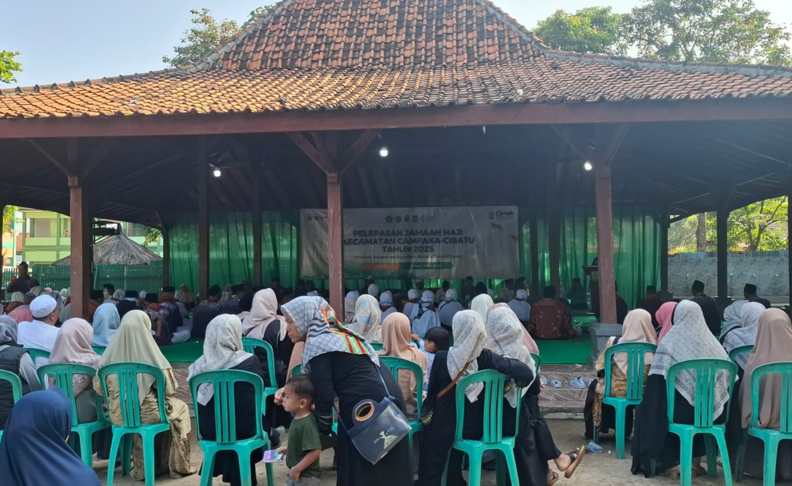 Kegiatan pelepasan jemaah berlangsung di titik kumpul yang berlokasi di Aula Pondok Pesantren RiyadulMutaalimin, Kampung Cireok, Desa Cijaya, Kecamatan Campaka, Kabupaten Purwakarta.