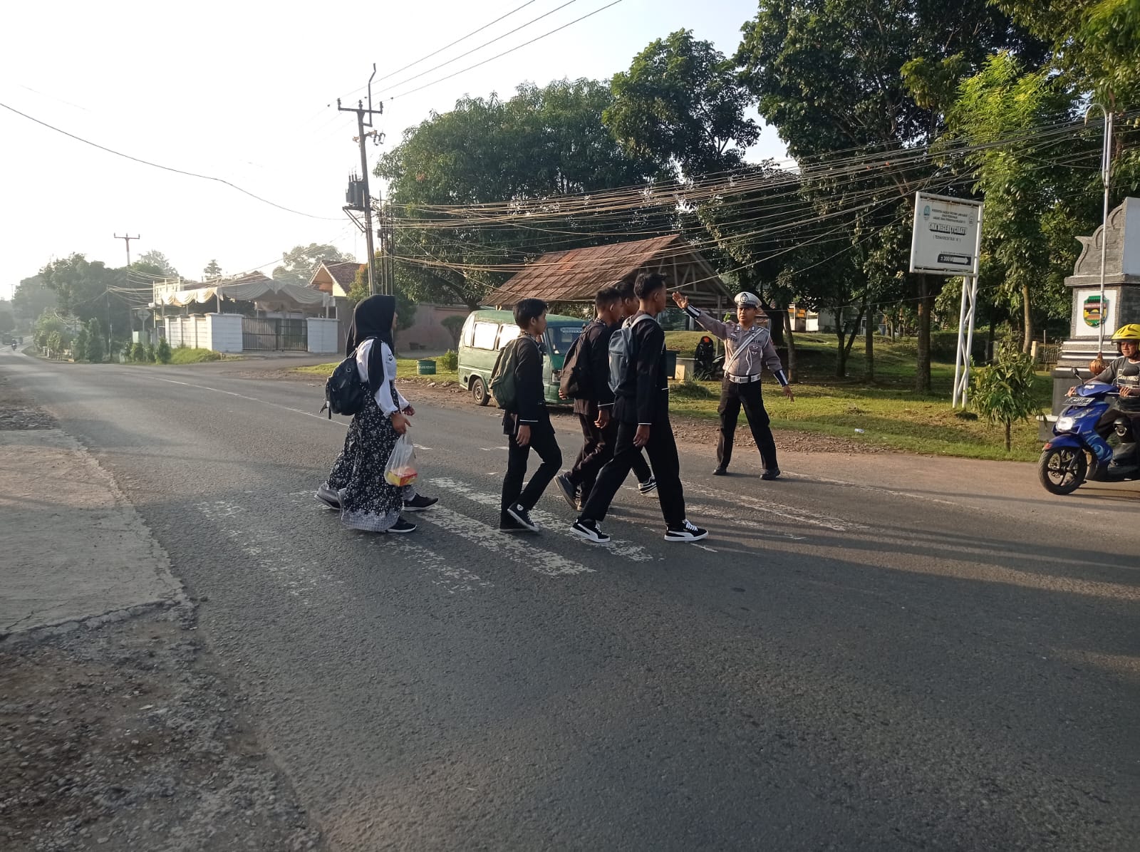 Tidak hanya mengatur arus kendaraan agar tetap tertib, Kanit Lantas juga terlihat aktif membantu anak-anak sekolah yang hendak menyebrang jalan. Dengan penuh kesabaran dan kepedulian, satu per satu pelajar diarahkan menyeberang dengan aman.