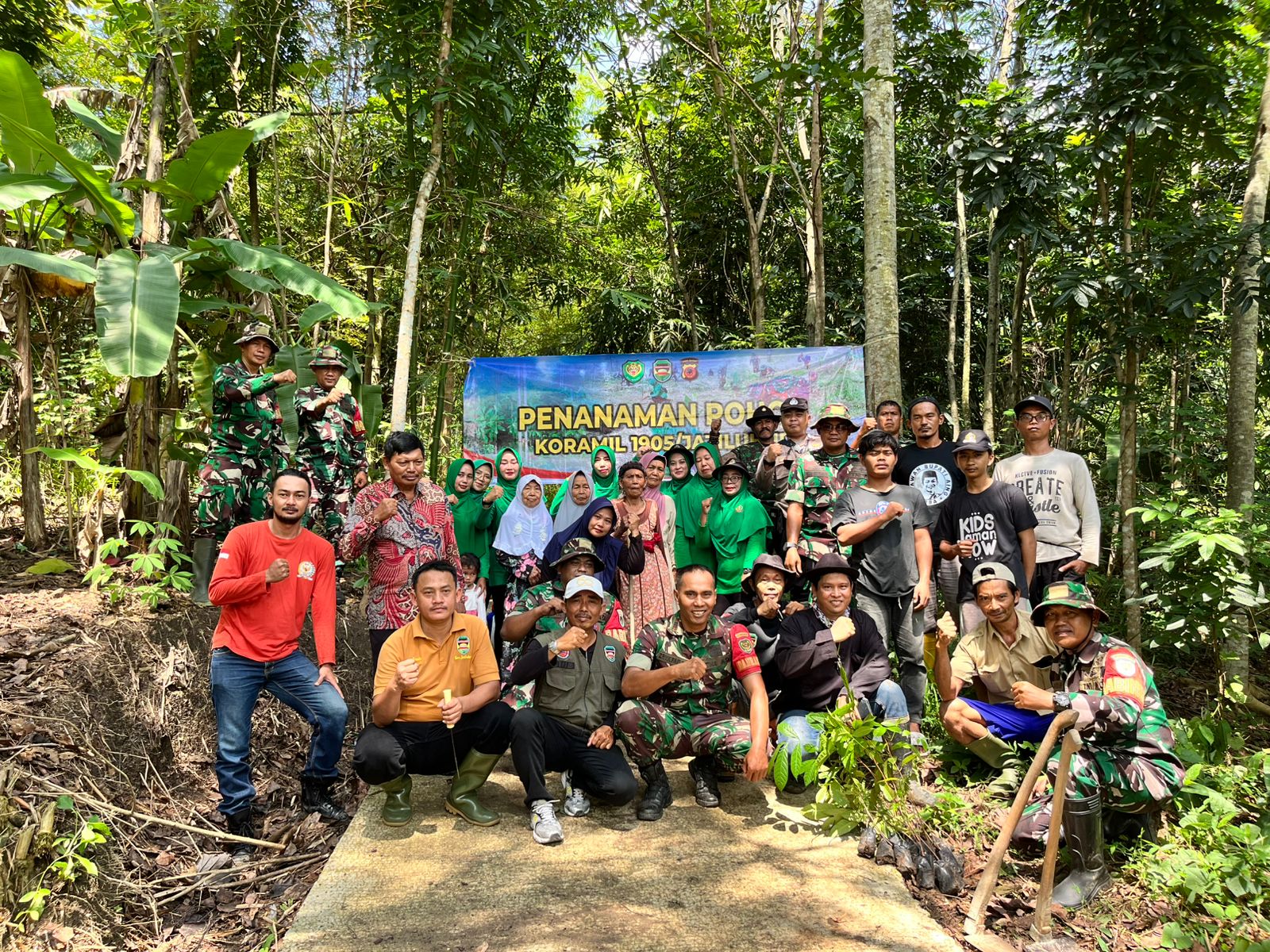 Kegiatan ini dihadiri langsung oleh Danramil Jatiluhur beserta jajaran, perangkat desa, tokoh masyarakat, serta warga setempat. Puluhan bibit pohon produktif dan pelindung ditanam di sekitar wilayah kampung sebagai upaya mendukung program penghijauan dan pelestarian alam.
