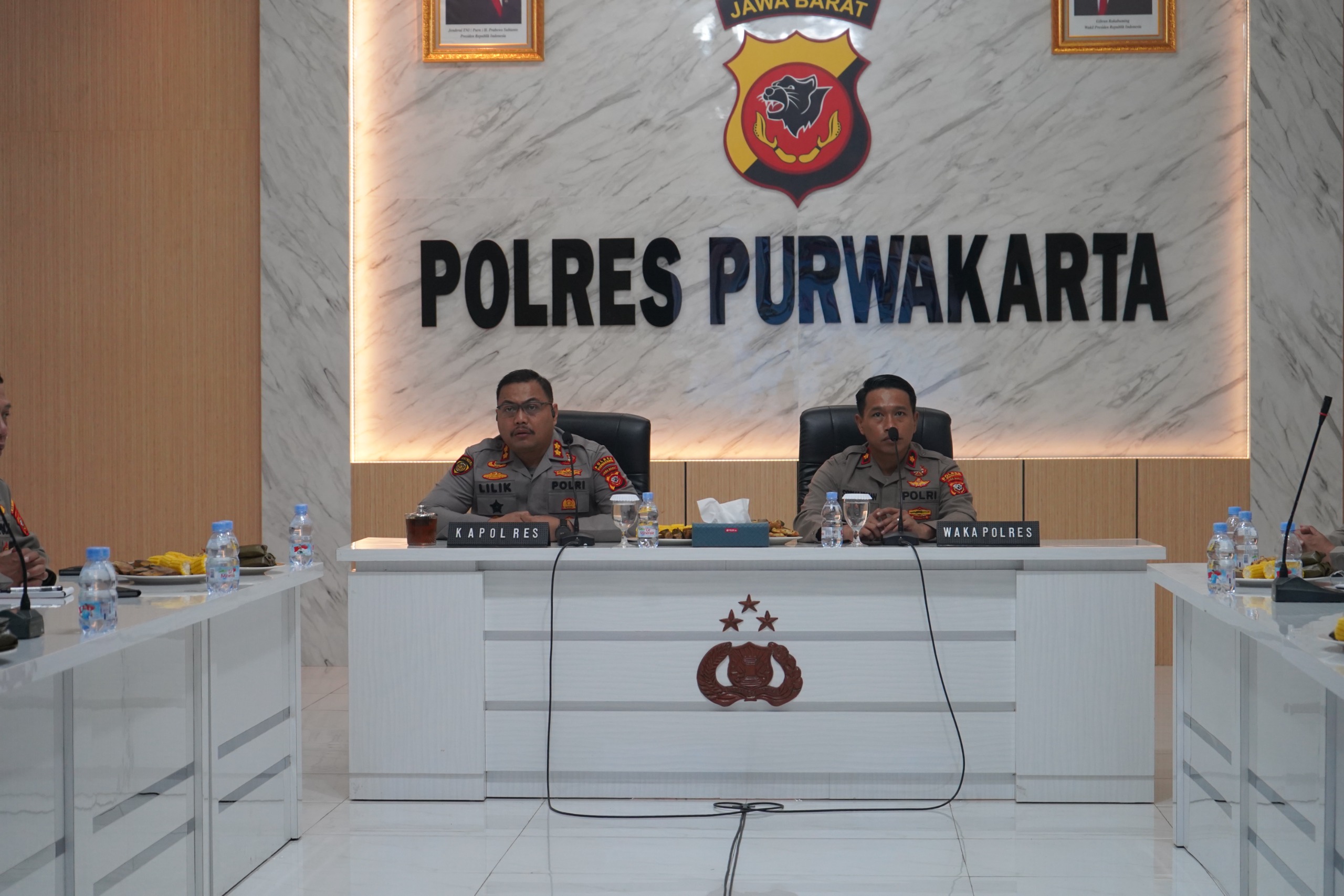 PURWAKARTA – Kapolres Purwakarta AKBP Lilik Ardhiansyah bersama Wakapolres, para Pejabat Utama (PJU), dan seluruh Kapolsek jajaran mengikuti rangkaian rapat strategis secara virtual dari Aula Presisi Polres Purwakarta.