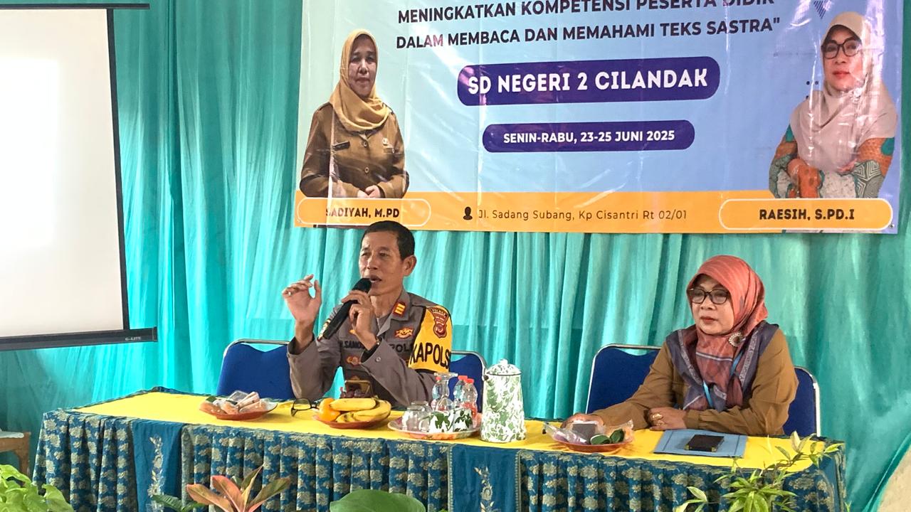 PURWAKARTA – Kapolsek Cibatu AKP Udin Samosir hadir sebagai narasumber dalam kegiatan In House Training (IHT) bertema “Sekolah Bersih Tanpa NAPZA (Narkotika, Psikotropika, dan Zat Adiktif)” yang digelar di SDN 2 Cilandak pada Senin, 23 Juni 2025.