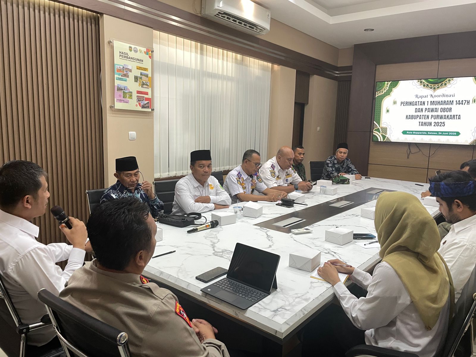 PURWAKARTA – Kapolres Purwakarta, AKBP Lilik Ardhiansyah diwakili Kabag Ops, Kompol Erwan Dwiyanto hadiri Rapat Koordinasi Persiapan Pelaksanaan Peringatan Tahun Baru Islam 1447 Hijriah, Pada Selasa, 24 Juni 2025.