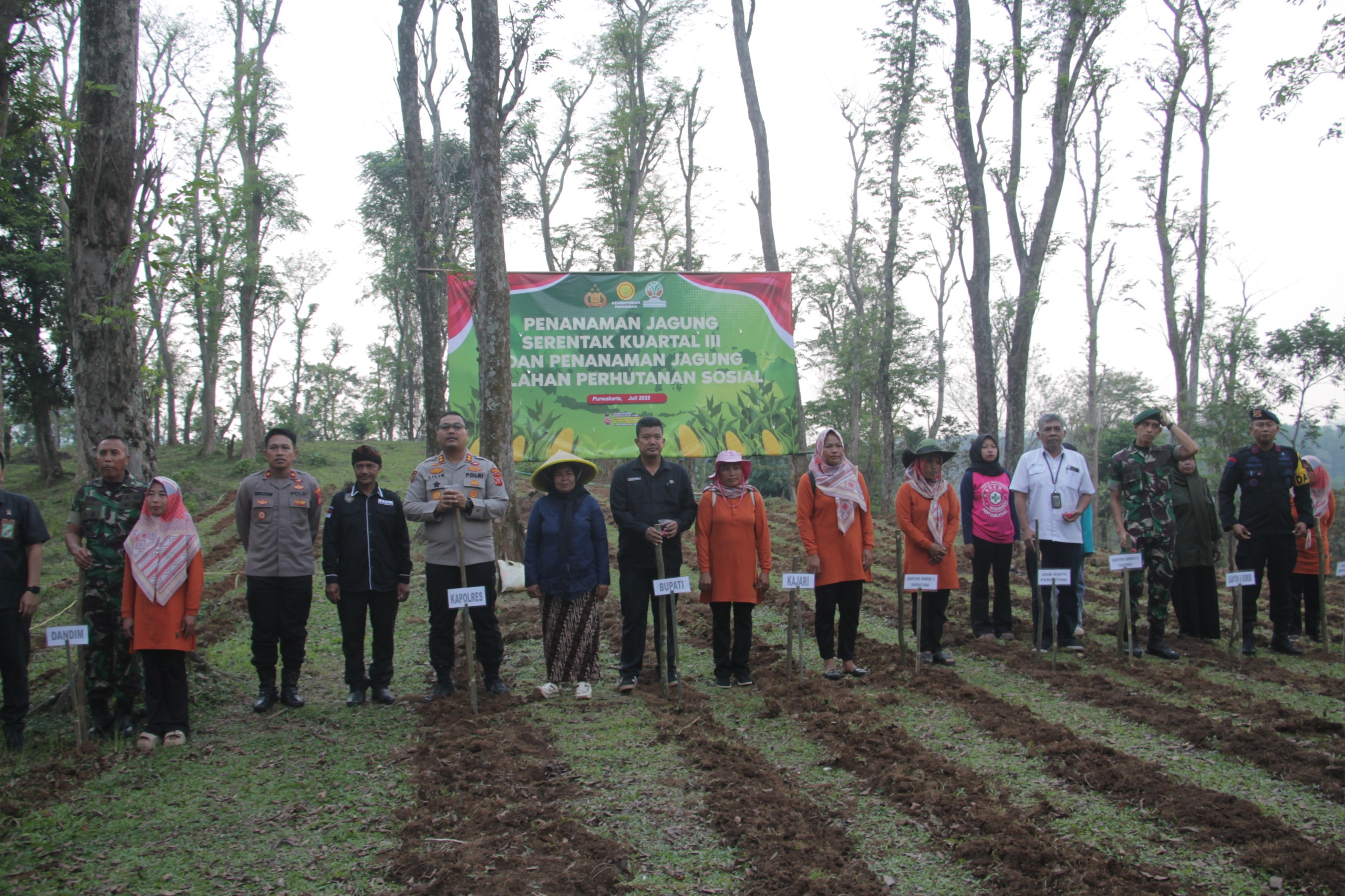 PURWAKARTA – Polres Purwakarta bersama Forkopimda dan Dinas Pertanian melaksanakan Penanaman Jagung Serentak di lahan kehutanan sosial yang subur di Kampung Pasir Cabe, Desa Panyindangan, Kecamatan Sukatani, Kabupaten Purwakarta, Pada Rabu, 9 Juli 2025.