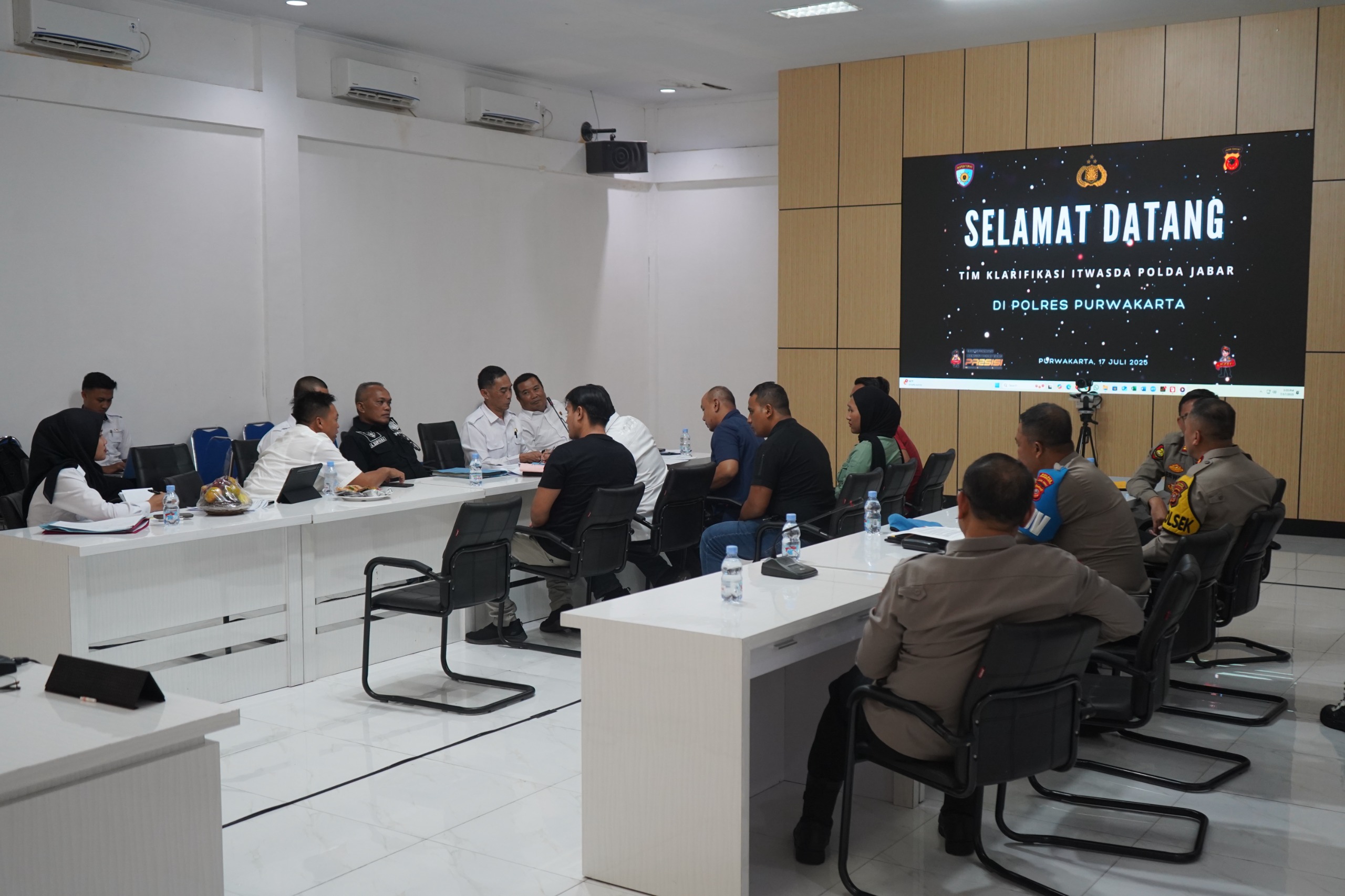 PURWAKARTA – Polres Purwakarta menerima kunjungan Tim Itwasda Polda Jabar dalam rangka pelaksanaan Klarifikasi Dumas (Pengaduan Masyarakat) secara terpadu, yang berlangsung pada Kamis, 17 Juli 2025 pukul 15.00 WIB di Aula Presisi Polres Purwakarta.