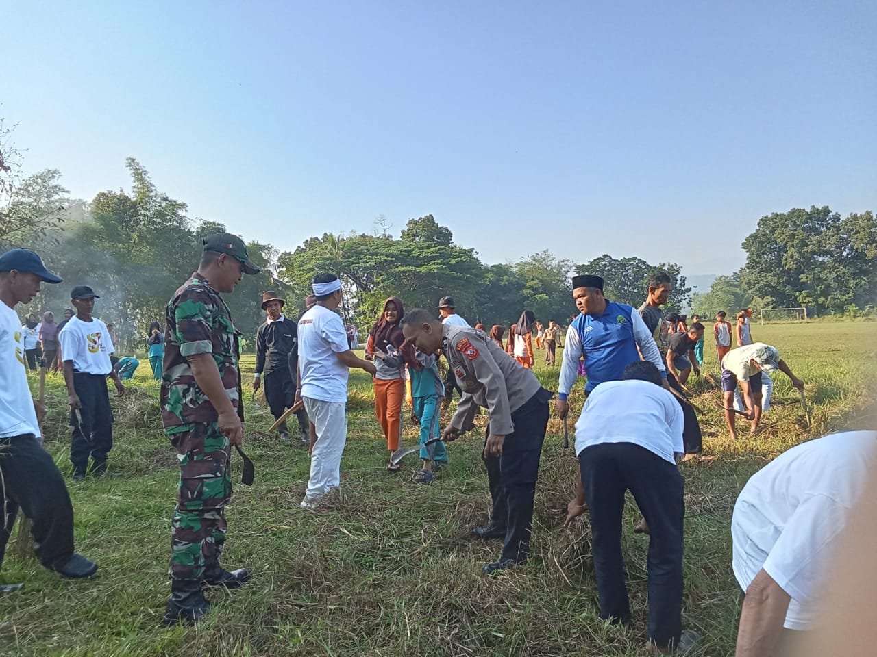 Warga bersama sama. Bergotong royong demi lingkungan sehat dan bersih serta himbauan kamtibmas