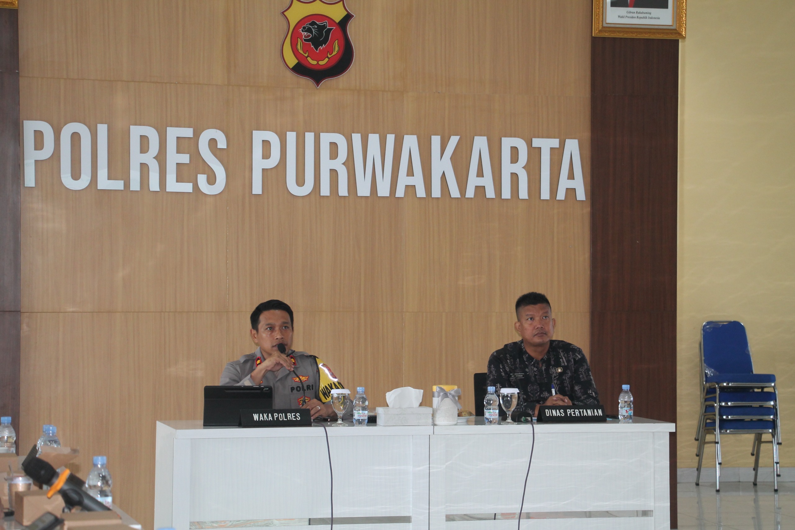 Kapolres Purwakarta, AKBP I Dewa Putu Gede Anom Danujaya melalui Kasi Humas, AKP Enjang Sukandi mengatakan, dalam kegiatan tersebut dipaparkan terkait sinergitas antara Polri dengan Kementerian Pertanian telah dituangkan dalam Nota Kesepahaman yang bertujuan untuk mengoptimalkan sinergitas tugas dan fungsi dalam penyelenggaraan pembangunan pertanian untuk mewujudkan peningkatan ketersediaan pangan strategis.