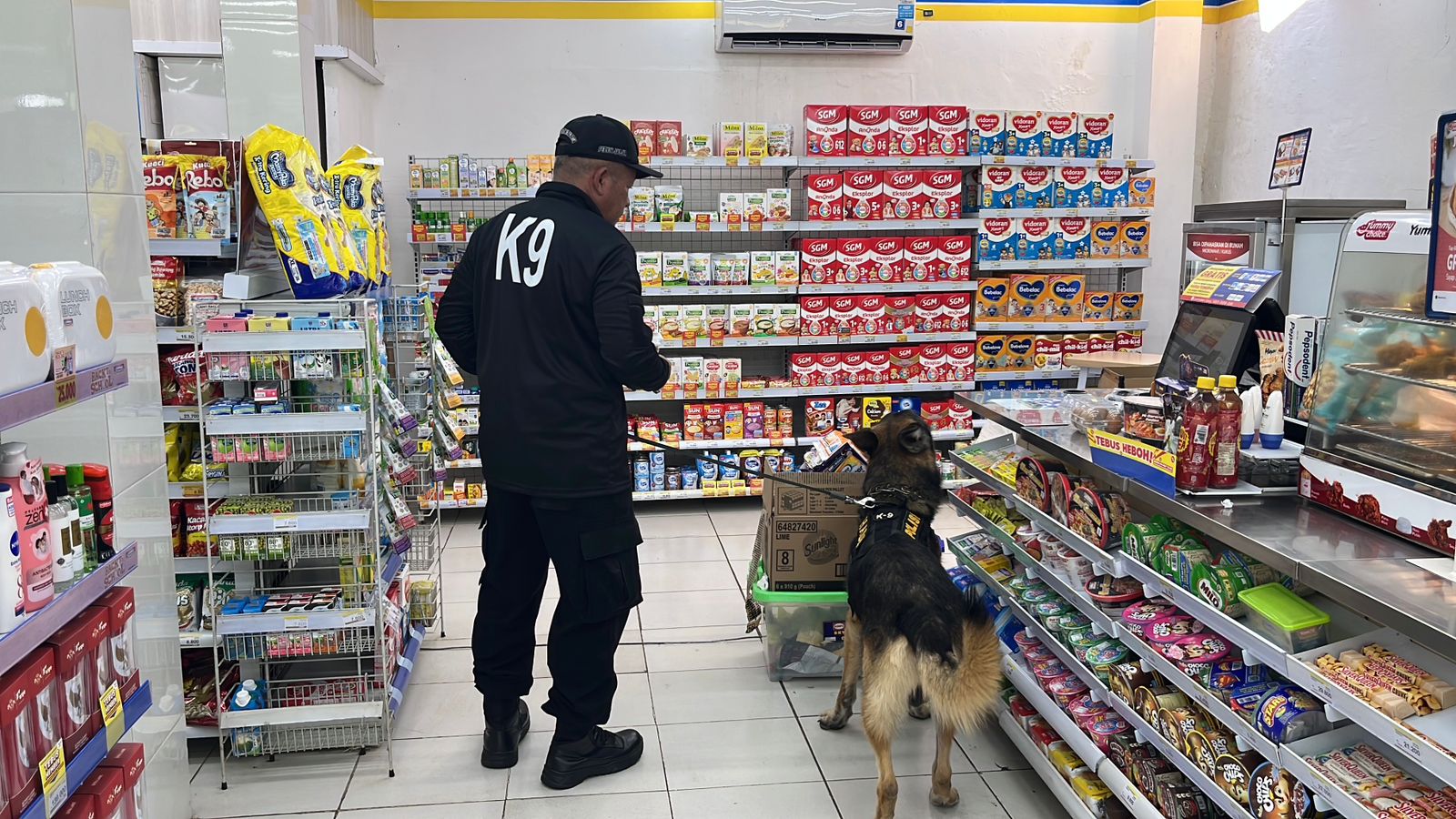 Pencurian di toko indomart dengan cara membobol atap, dan dilanjutkan pelacakan pencarian jejak bekas pelakunya, yang dilakukan oleh anjing pelacak unit K9 sat Samapta Polres Purwakarta.