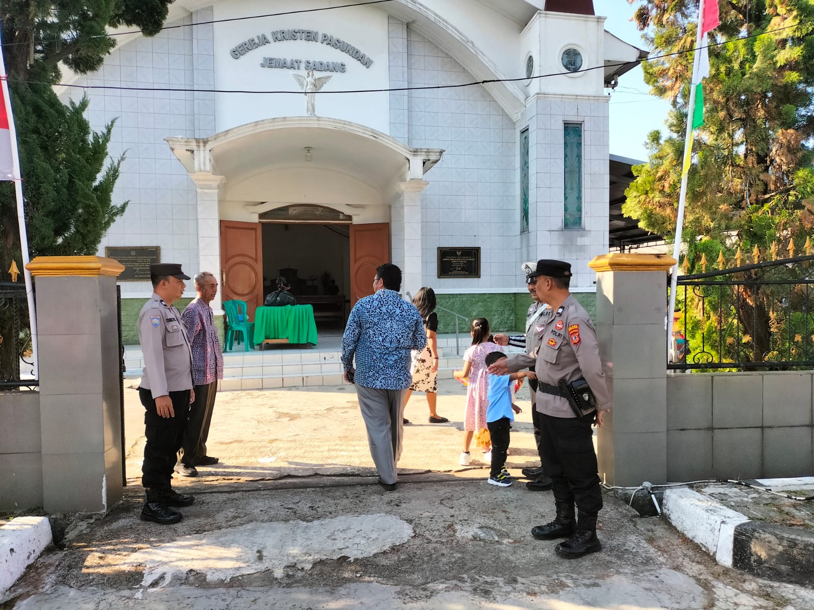 Purwakarta – Dalam rangka memberikan rasa aman dan nyaman kepada umat Kristiani dalam menjalankan ibadah, Polsek Bungursari Polres Purwakarta melaksanakan kegiatan pengamanan di sejumlah gereja yang ada di wilayah hukumnya, pada Senin, 04 Agustus 2025. Pengamanan ini merupakan bagian dari tugas rutin untuk memastikan situasi kamtibmas tetap kondusif selama pelaksanaan ibadah keagamaan.