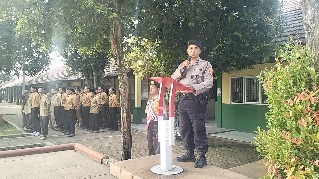 Jadi pembina upacara, personel Polsek Plered sampaikan pesan kamtibmas tentang pencegahan maraknya aksi kenakalan remaja dalam lingkungan bermasyarakat dan sekolah.