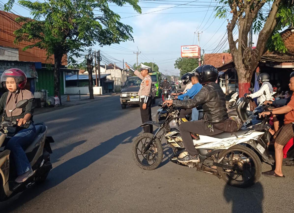 PURWAKARTA – Untuk menjaga kelancaran arus kendaraan dan mencegah kemacetan, Kanit Lantas Polsek Cibatu Bripka Dede melaksanakan kegiatan pengaturan lalu lintas di Pertigaan Cisantri, Kecamatan Cibatu, Kabupaten Purwakarta, pada Rabu (1/10/2025).