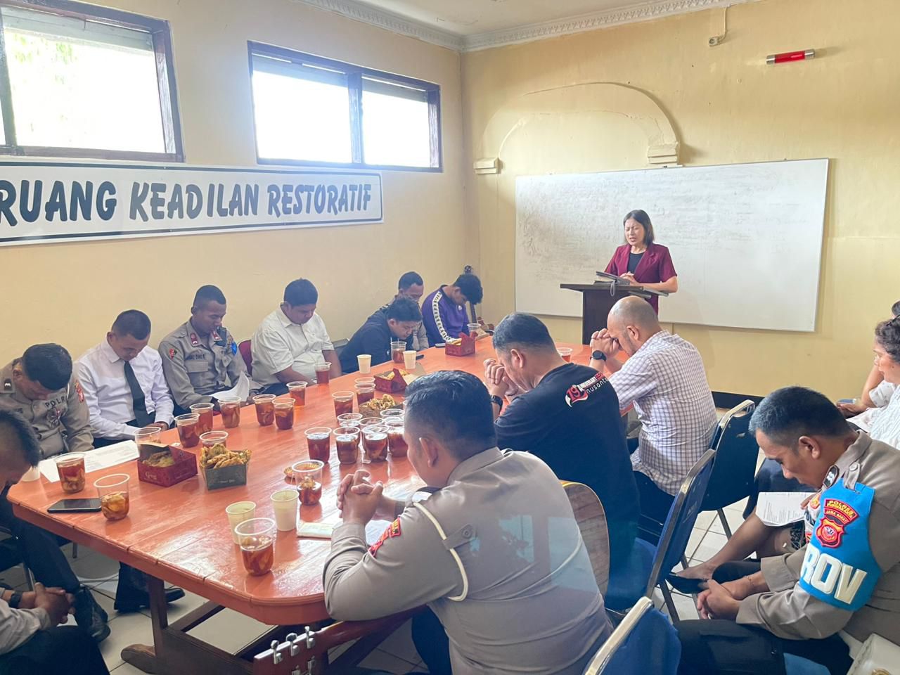 Binrohtal Nasrani yang digelar di Ruangan Narkoba Polres Purwakarta itu dimulai dengan pujian dan doa, kemudian dilanjutkan dengan penyampaian Firman Tuhan oleh Pendeta Pendeta Veronica Nussa, mengangkat tema ‘Melaksana Tugas sesuai dengan kehendak Tuhan”.