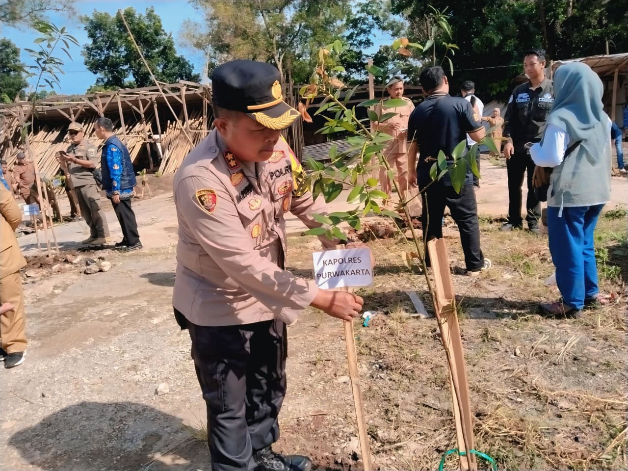 Kapolres Purwakarta, AKBP I Dewa Putu Gede Anom Danujaya diwakili Kapolsek Purwakarta Kota, AKBP Marsono ikuti penanaman pohon yang digelar Dinas Kehutanan Wilayah II, Dinas Kehutanan Provinsi Jawa Barat di Pasar Hewan Ciwareng, Kecamatan Babakancikao, Kabupaten Purwakarta, pada Senin, 17 November 2025.