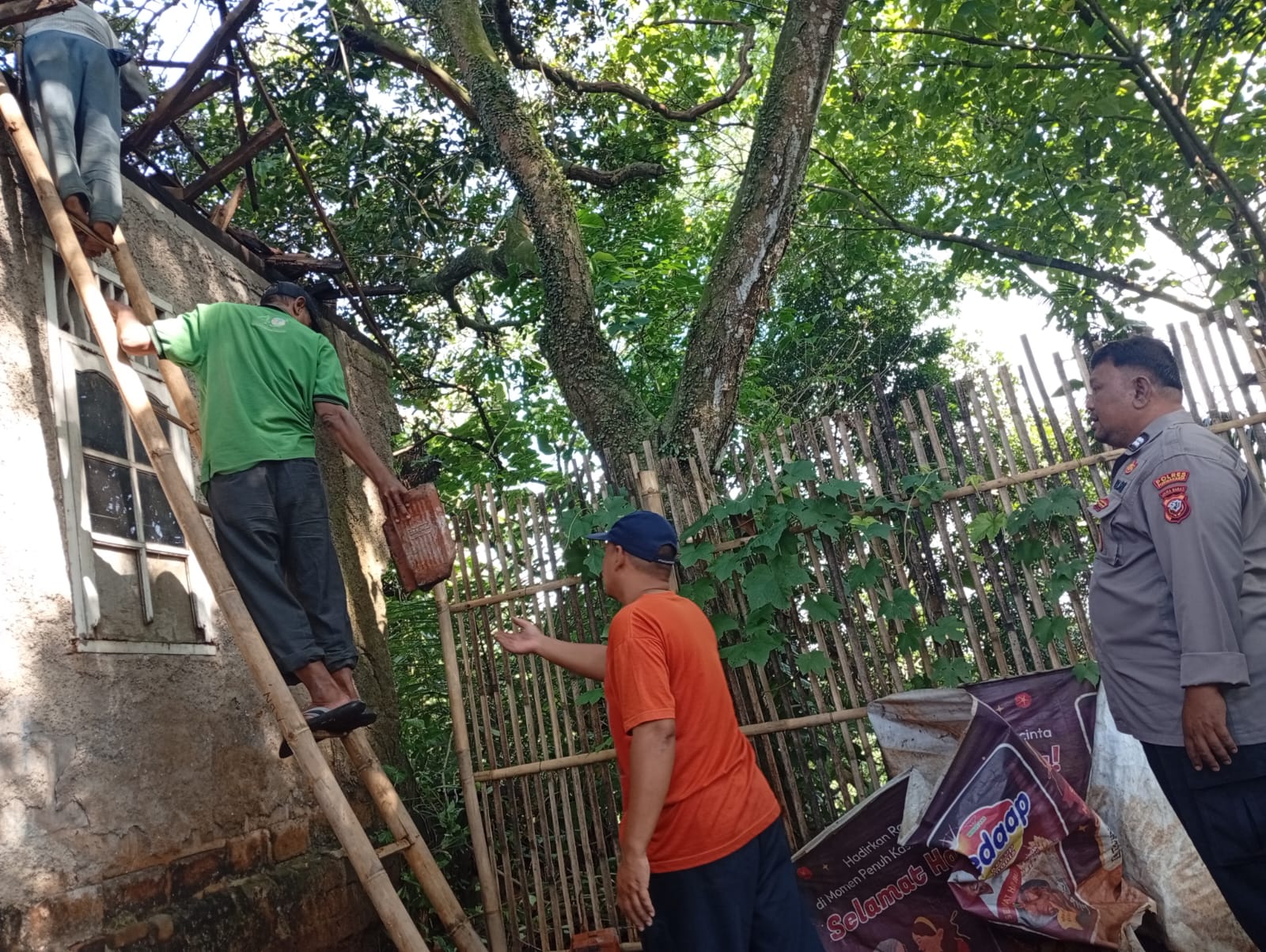 Mengetahui kejadian tersebut, Aiptu Didin Hoerudin segera mendatangi lokasi untuk memastikan kondisi warga dalam keadaan aman. Ia langsung berkoordinasi dengan masyarakat sekitar dan mengajak warga bergotong royong memperbaiki rumah yang mengalami kerusakan.
