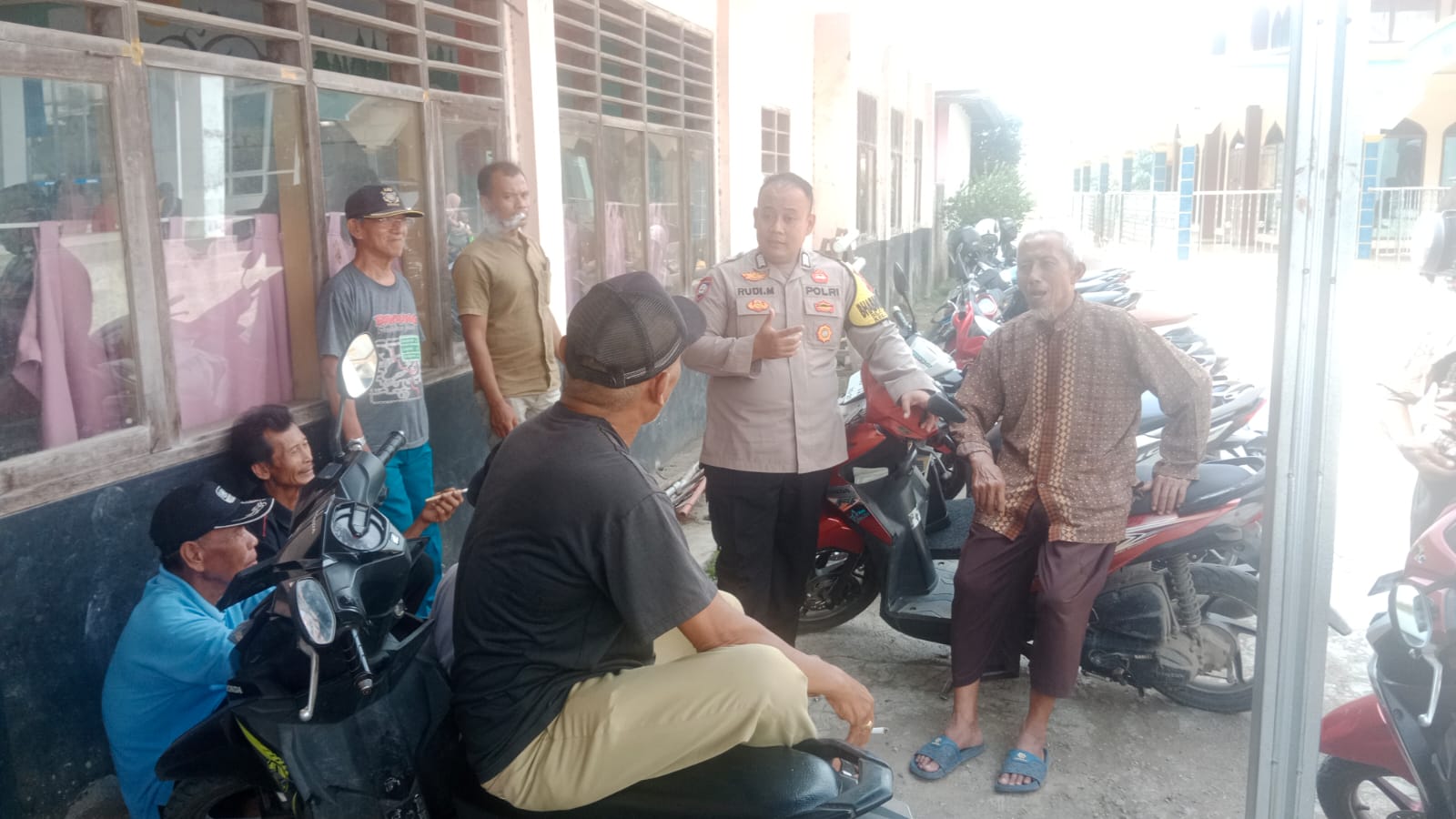Dalam kegiatan tersebut, Bhabinkamtibmas menyambangi warga yang sedang berkumpul di lingkungan pemukiman. Dengan pendekatan humanis, Bhabinkamtibmas berdialog langsung dengan masyarakat serta menyampaikan pesan-pesan kamtibmas agar warga senantiasa menjaga keamanan dan ketertiban lingkungan.