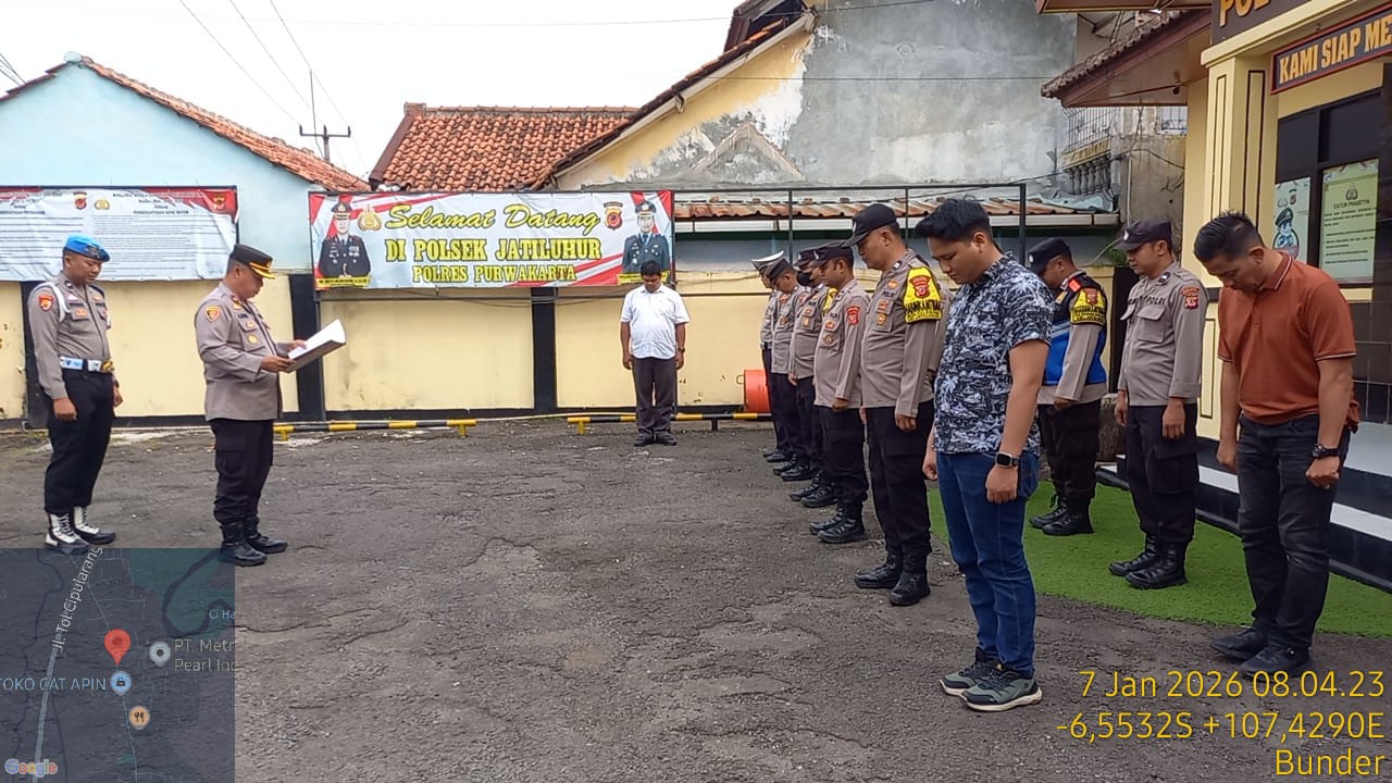 PURWAKARTA – Kapolsek Jatiluhur memimpin langsung apel pagi yang dilaksanakan di halaman Mapolsek Jatiluhur. Kegiatan apel pagi tersebut diikuti oleh seluruh personel Polsek Jatiluhur. Rabu (07/01/2026)