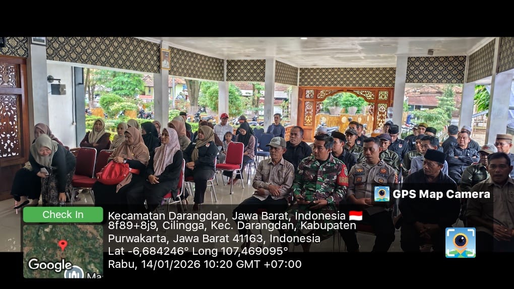 PURWAKARTA – Bhabinkamtibmas Desa Cilingga, Aipda Rendra Rahardianto, Polsek Darangdan, Polres Purwakarta, menghadiri kegiatan Musyawarah Perencanaan Pembangunan Desa (Musrenbangdes) Tahun Anggaran 2026 yang dilaksanakan pada Rabu, 14 Januari 2026, sekitar pukul 09.00 WIB, bertempat di Balai Sawala Jaga Satru Desa Cilingga, Kecamatan Darangdan, Kabupaten Purwakarta.