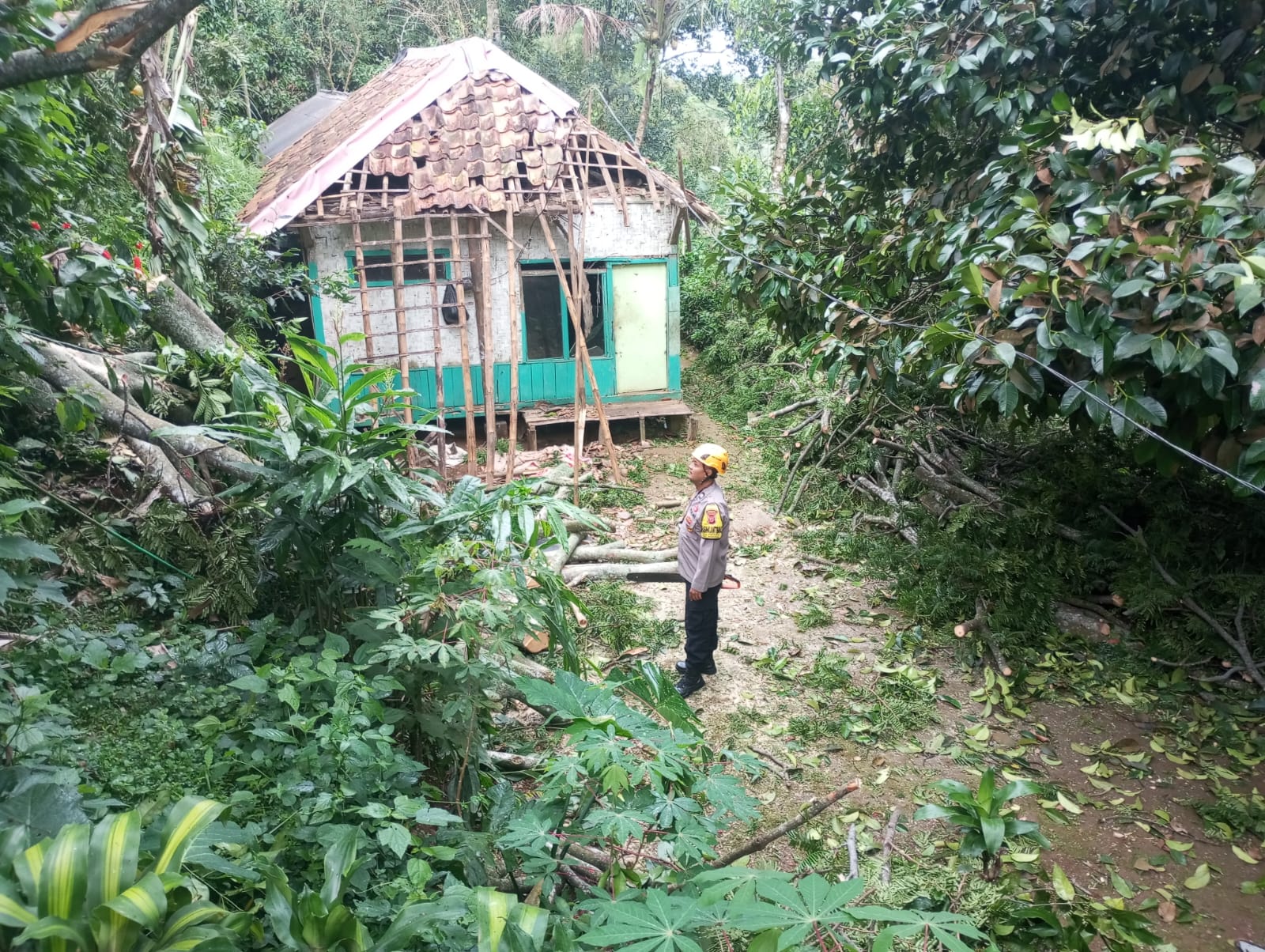 Menindaklanjuti laporan masyarakat, personel Polsek Wanayasa, Polres Purwakarta dengan sigap melakukan pengecekan TKP, pengamanan area, dan evakuasi pohon tumbang.