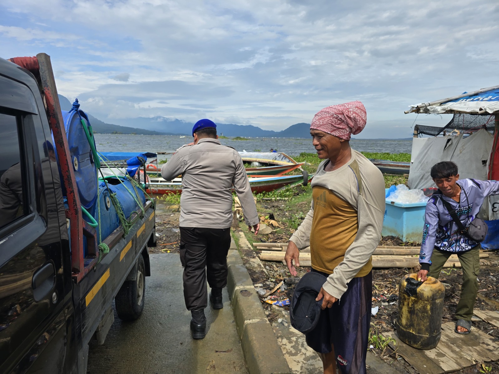 Melalui kegiatan ini, personel Sat Polairud berdialog dengan para nelayan terkait kondisi cuaca hujan yang terjadi belakangan ini serta dampaknya terhadap hasil panen ikan jaring.