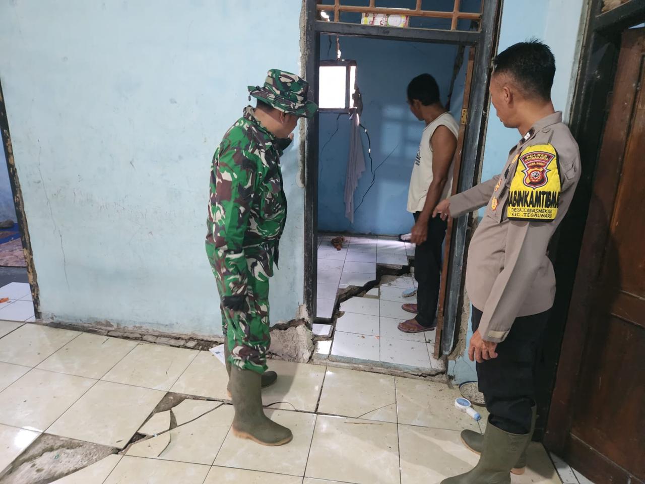 PURWAKARTA – Babinsa bersama Bhabinkamtibmas Polsek Plered, Polres Purwakarta dengan sigap lakukan pengecekan ke lokasi terjadinya bencana alam akibat pergeseran tanah di Desa Galumpit, Kecamatan Tegalwaru, Kabupaten Purwakarta, pada Jumat, 30 Januari 2026.