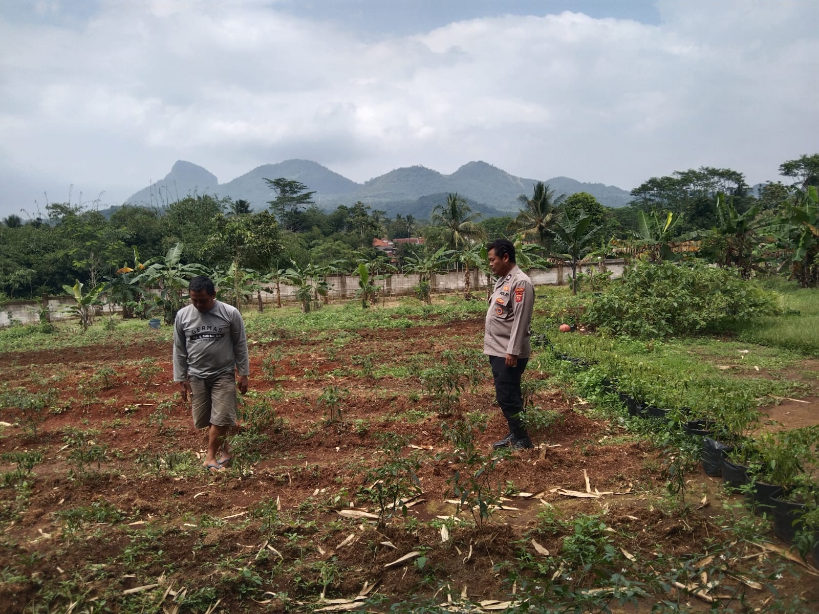Bhabinkamtibmas Polsek Plered melakukan pendampingan ketahanan pangan warga di bidang pertanian.