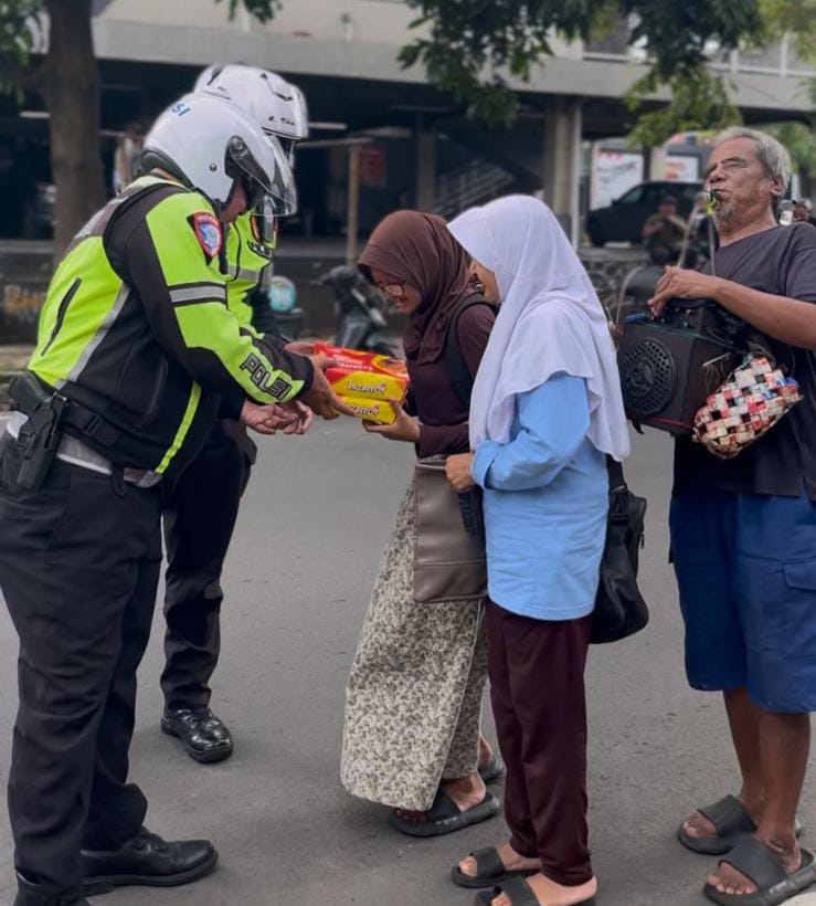 Seperti yang dilakukan personel Brigade Motor (BM) Satlantas Polres Purwakarta yang melakukan kegiatan bakti sosial bertajuk Jumat berbagi dengan membagikan nasi kotak kepada masyarakat.