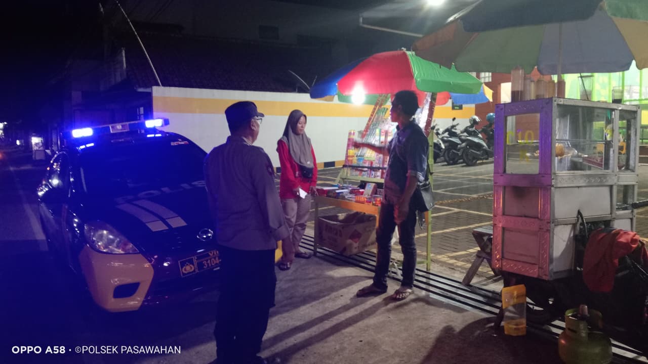 Petugas menyambangi pusat-pusat keramaian dan lokasi pedagang kaki lima untuk memastikan situasi tetap aman dan kondusif. Selain melakukan pemantauan, personel juga memberikan edukasi kepada masyarakat agar selalu waspada terhadap segala bentuk tindak kriminalitas.